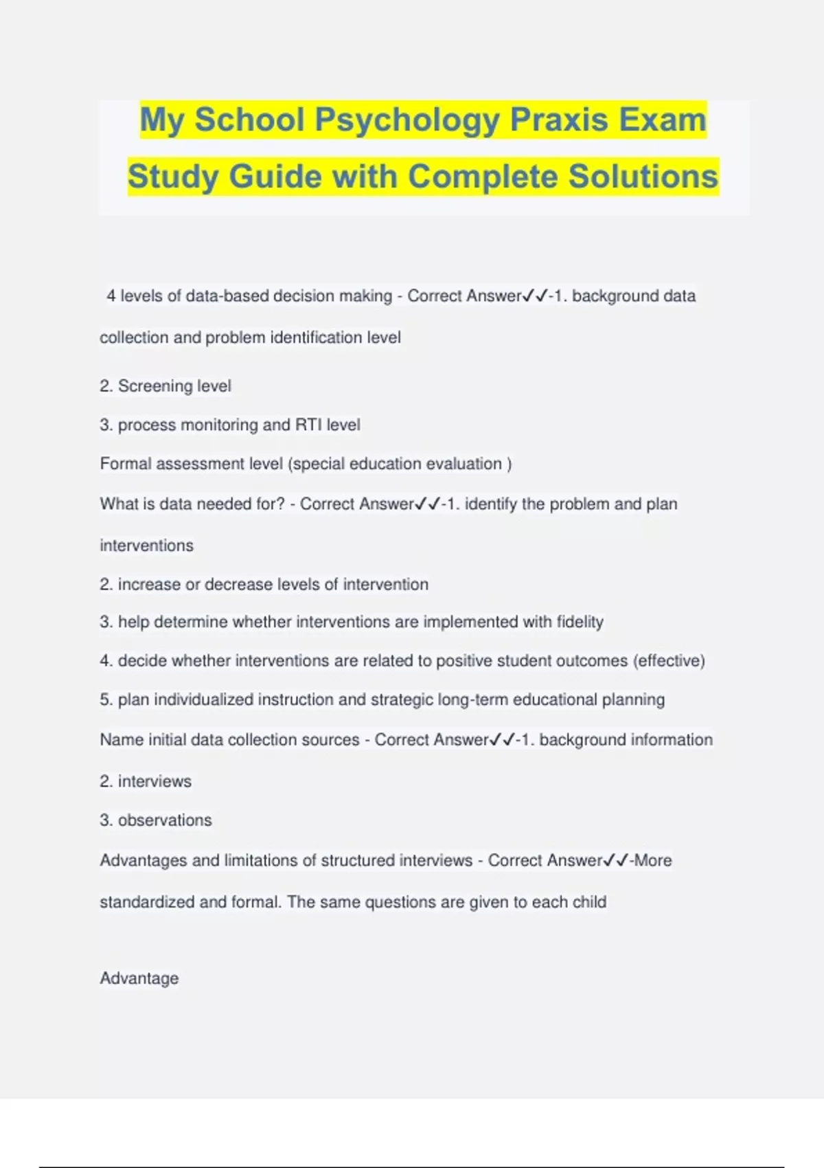 My School Psychology Praxis Exam Study Guide with Complete Solutions