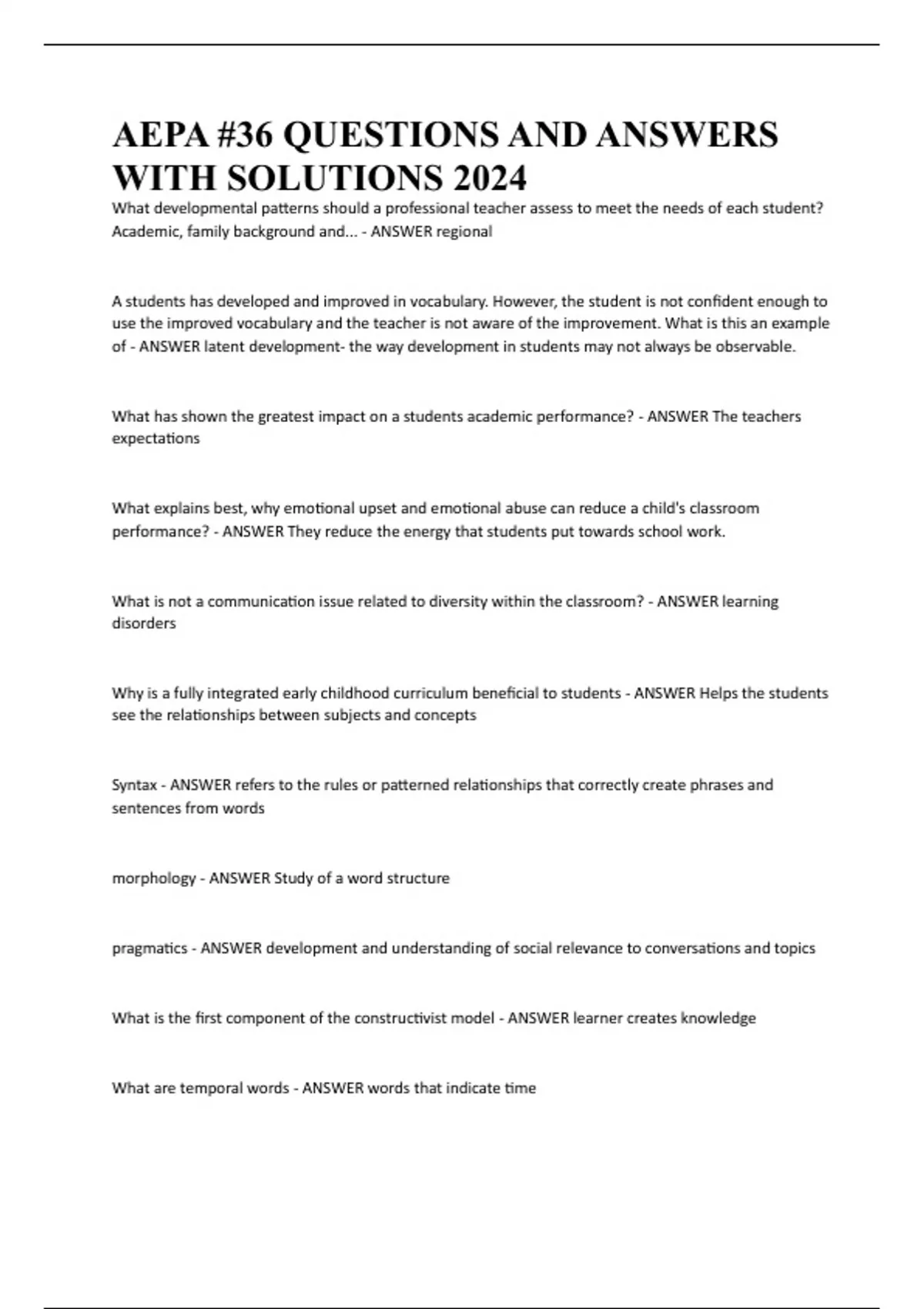 AEPA #36 QUESTIONS AND ANSWERS WITH SOLUTIONS 2024