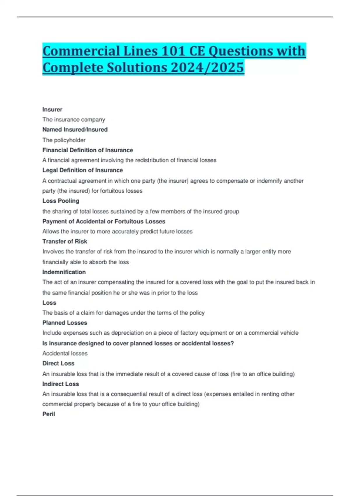 Commercial Lines 101 CE Questions with Complete Solutions 2024/2025