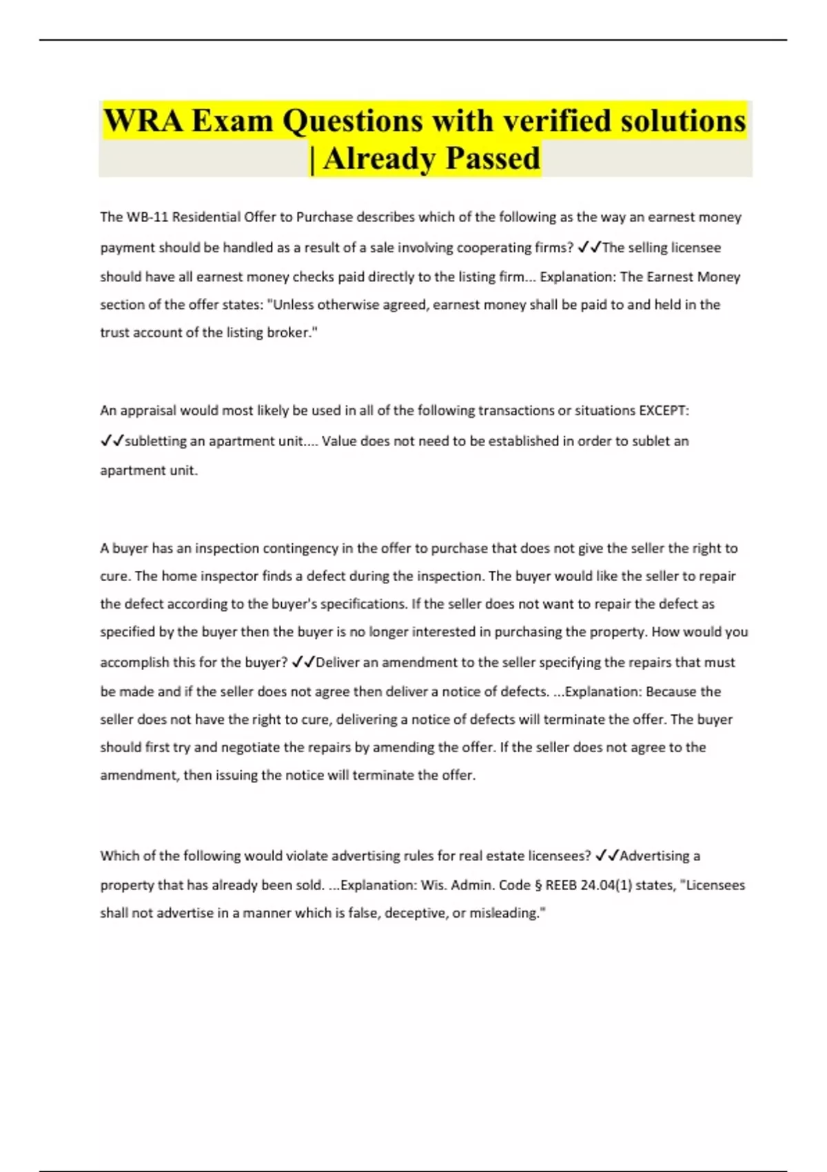 wra exam questions with verified solutions