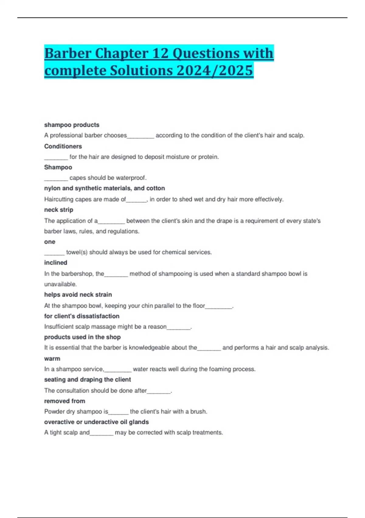 Barber Chapter 12 Questions with complete Solutions 2024/2025