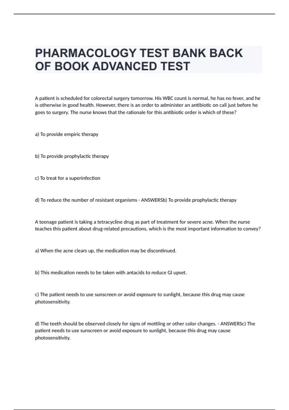 PHARMACOLOGY TEST BANK BACK OF BOOK ADVANCED TEST