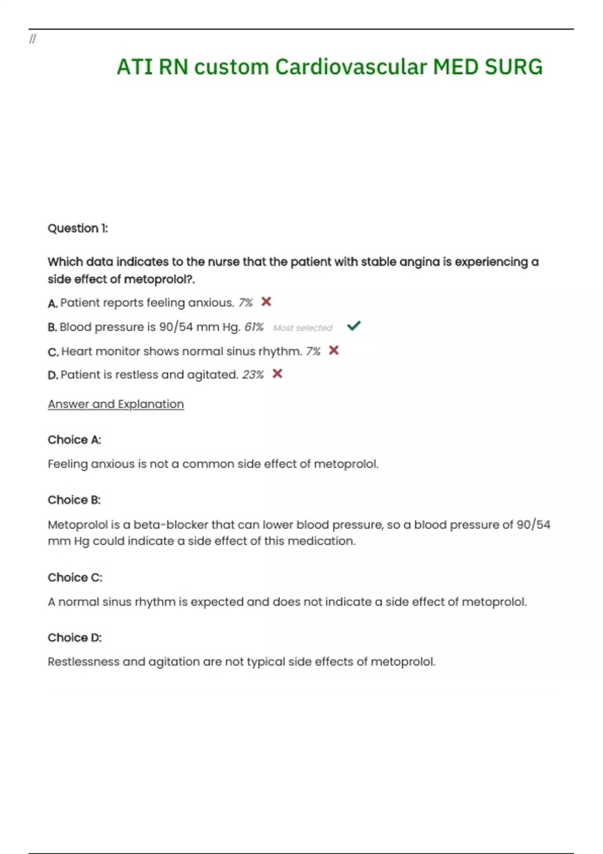 ATI RN custom Cardiovascular MED SURG Questions and Verified Answers with Rationales