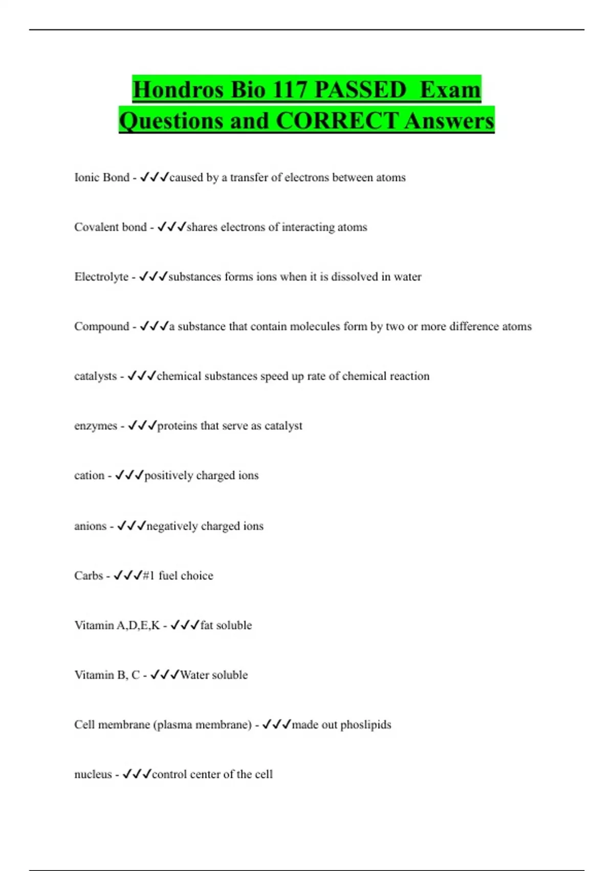 Hondros Bio 117 PASSED Exam Questions and CORRECT Answers