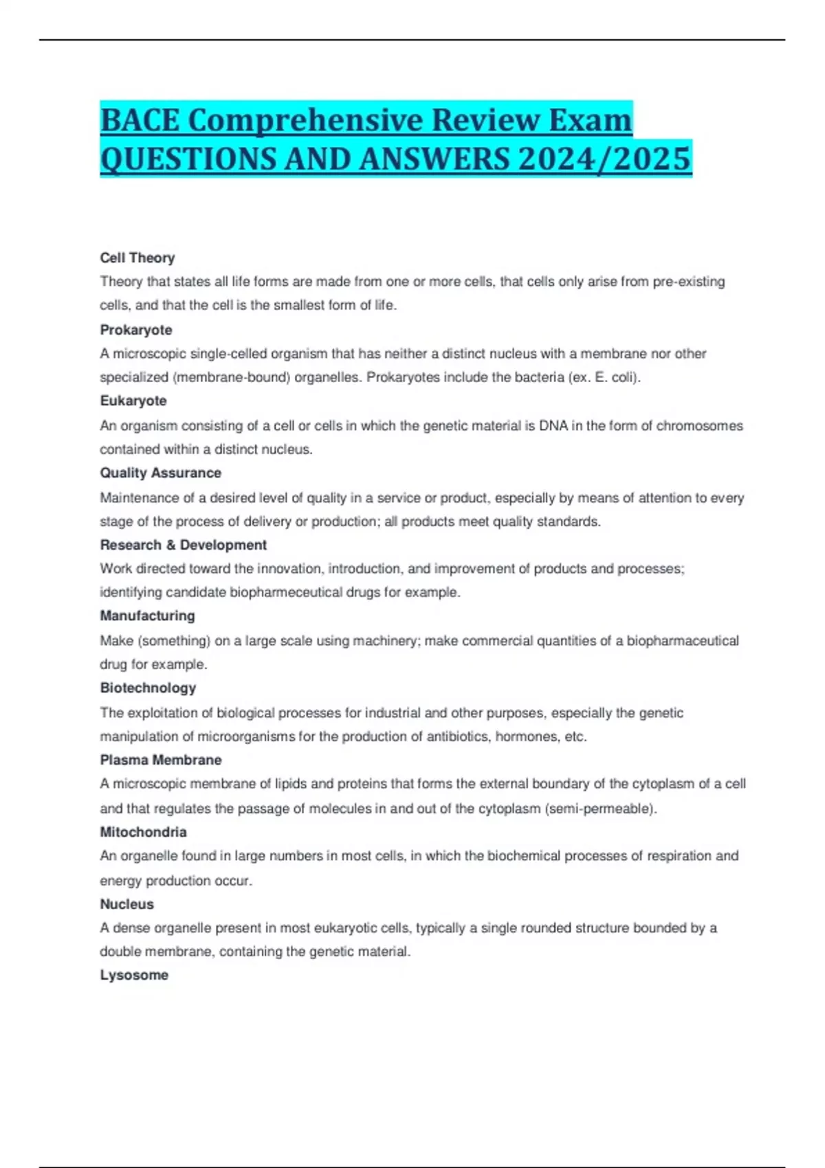 BACE Comprehensive Review Exam QUESTIONS AND ANSWERS 2024/2025