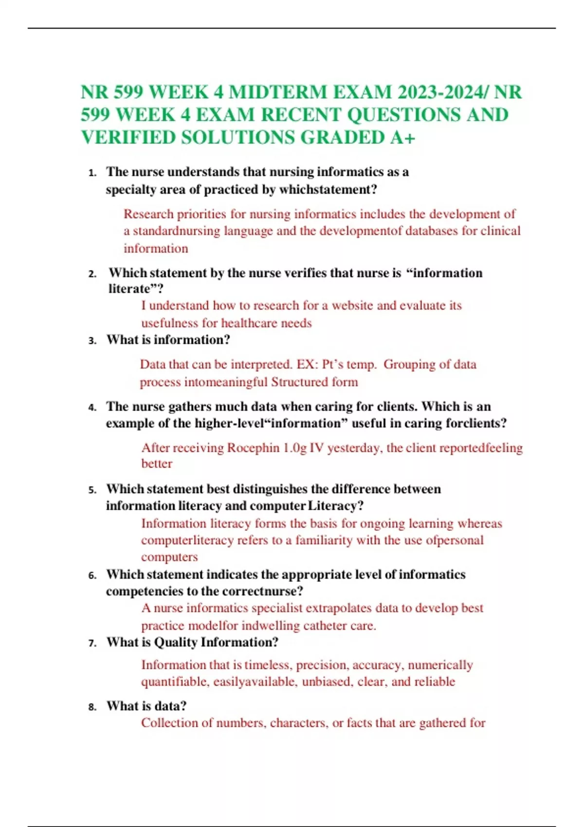 NR 599 WEEK 4 MIDTERM EXAM / NR 599 WEEK 4 EXAM RECNR 599 WEEK 4 MIDTERM EXAM / NR 599 WEEK 4 EXAM RECENT QUESTIONS AND VERIFIED SOLUTIONS GRADEDENT QUESTIONS AND VERIFIED SOLUTIONS GRADED A+