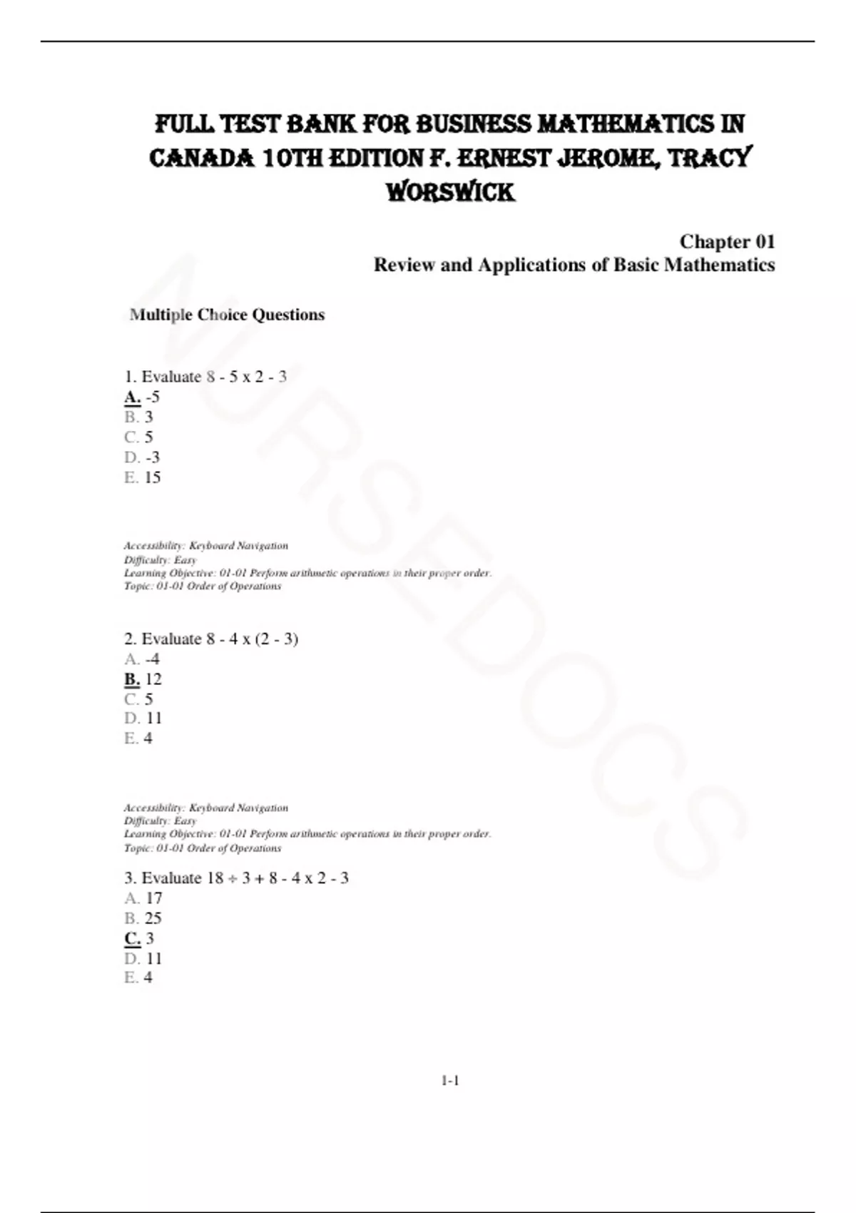 Test Bank for Business Mathematics In Canada 10th edition F. Ernest Jerome, Tracy Worswick