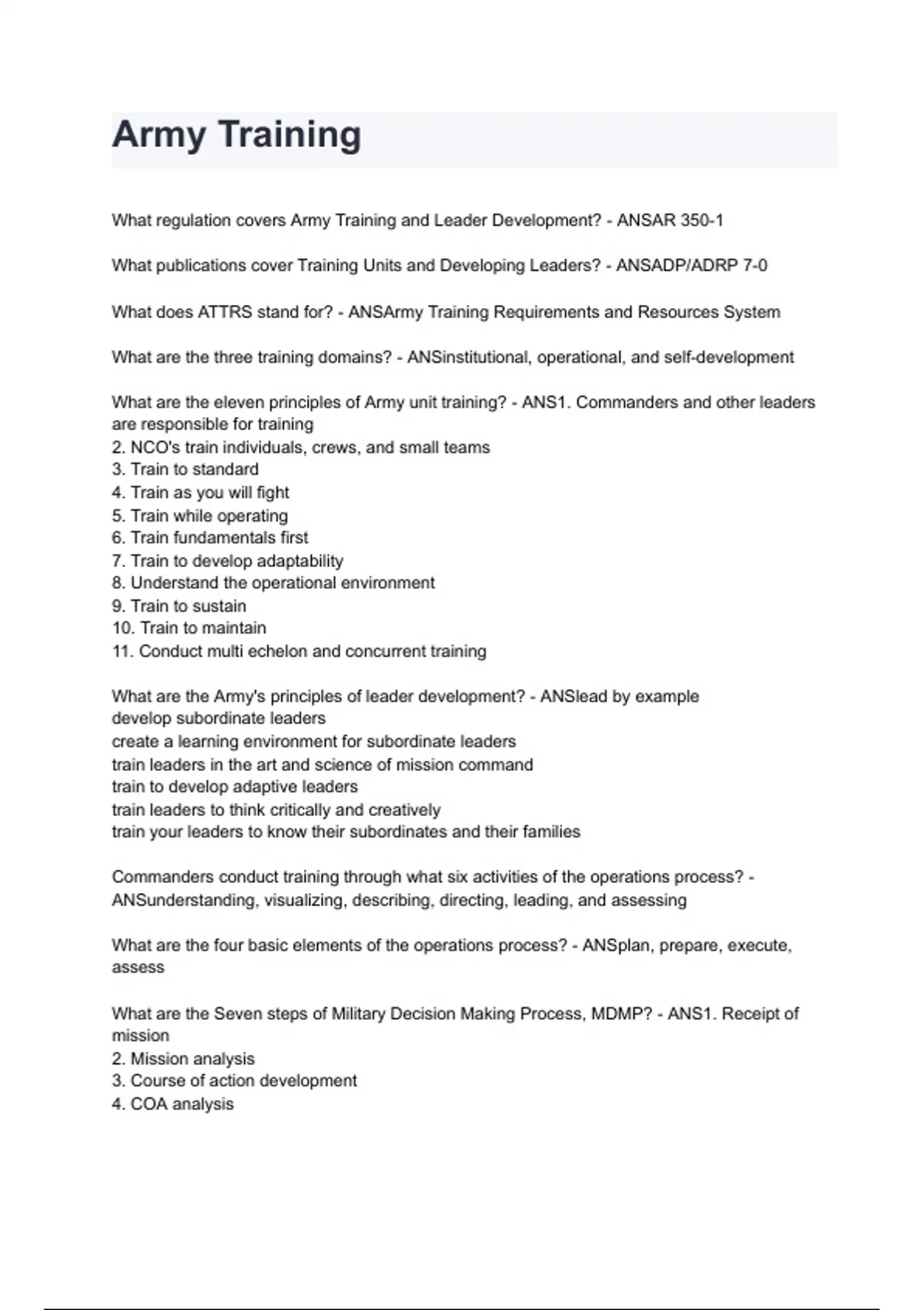 What are the eleven principles of Army unit training? - ANS1. Commanders and other leaders