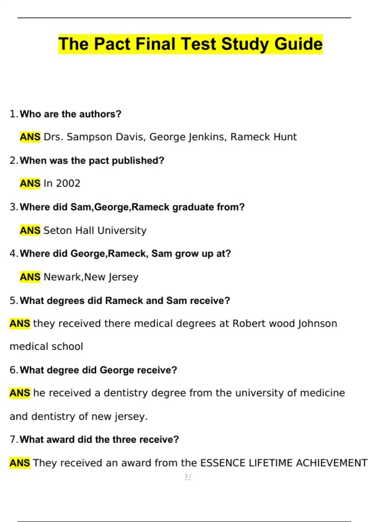 The Pact Final Test Study Guide Questions and Answers (2024 / 2025) Updated Latest (Verified Answers)