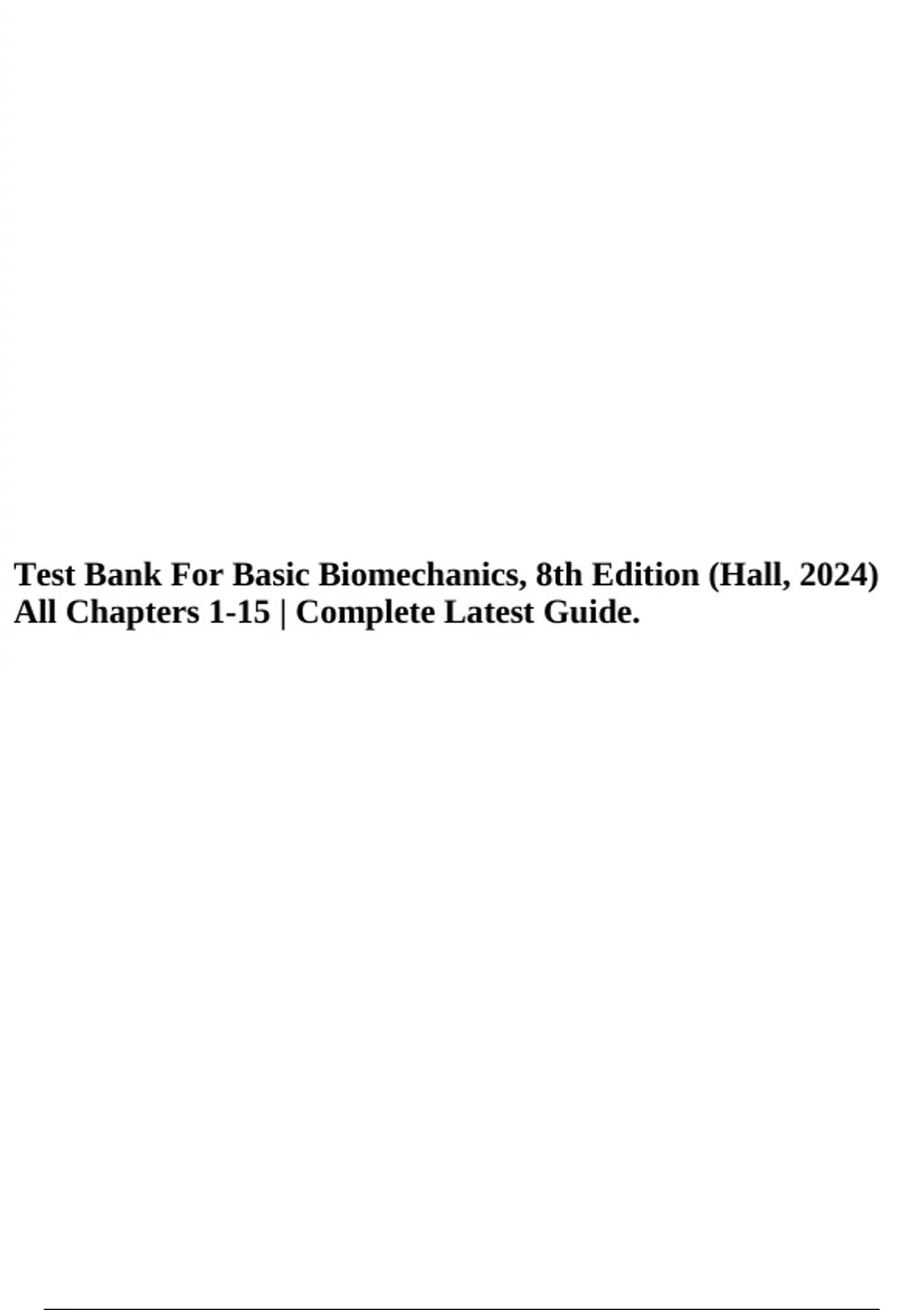 Test Bank For Basic Biomechanics, 8th Edition (Hall, 2024) All Chapters 1-15 | Complete Latest Guide.