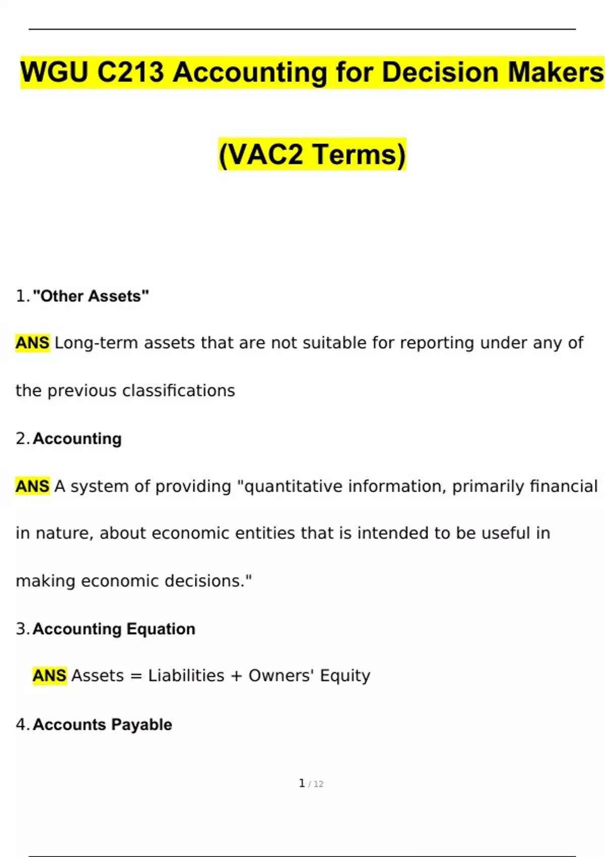 WGU C213 Accounting for Decision Makers (VAC2 Terms) Questions and Answers (2024 / 2025) Updated Latest (Verified Answers)