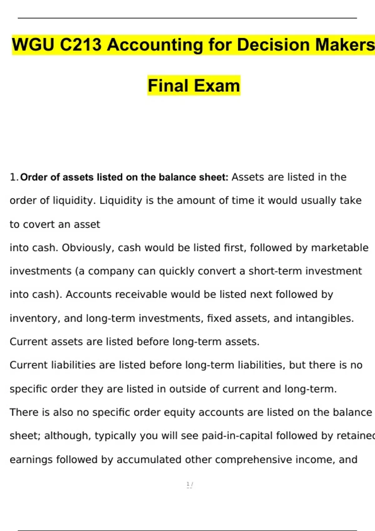 WGU C213 Final Exam Accounting for Decision Makers Questions and Answers (2024 / 2025) Updated Latest (Verified Answers)