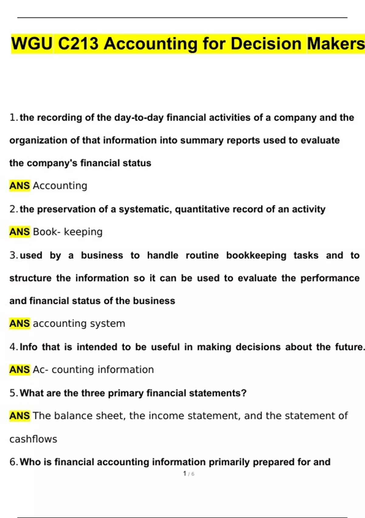 WGU C213 Accounting for Decision Makers 2024 Questions and Answers (2024 / 2025) Updated Latest (Verified Answers)