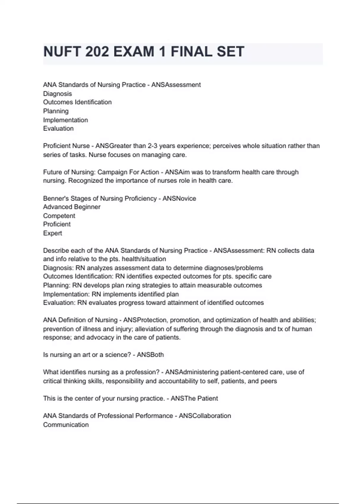 NUFT 202 EXAM 1 FINAL SET questions and answers already graded A+ 2024/2025