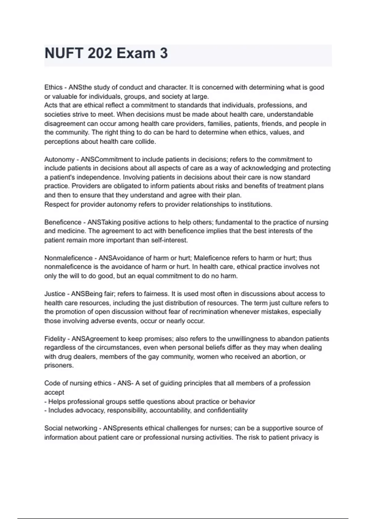 NUFT 202 Exam 3 questions and answers already graded A+ 2024/2025