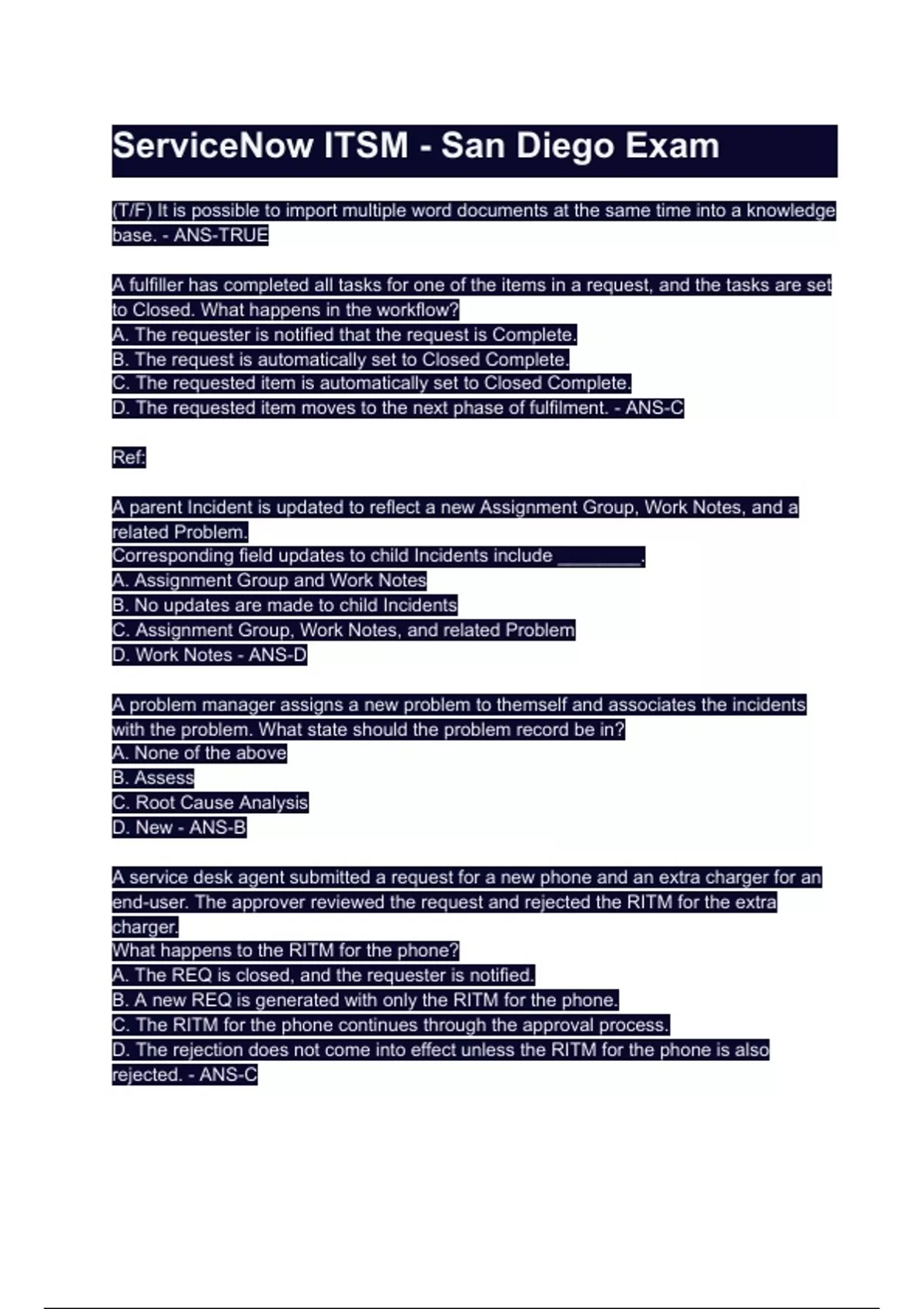 ServiceNow ITSM - San Diego Exam.