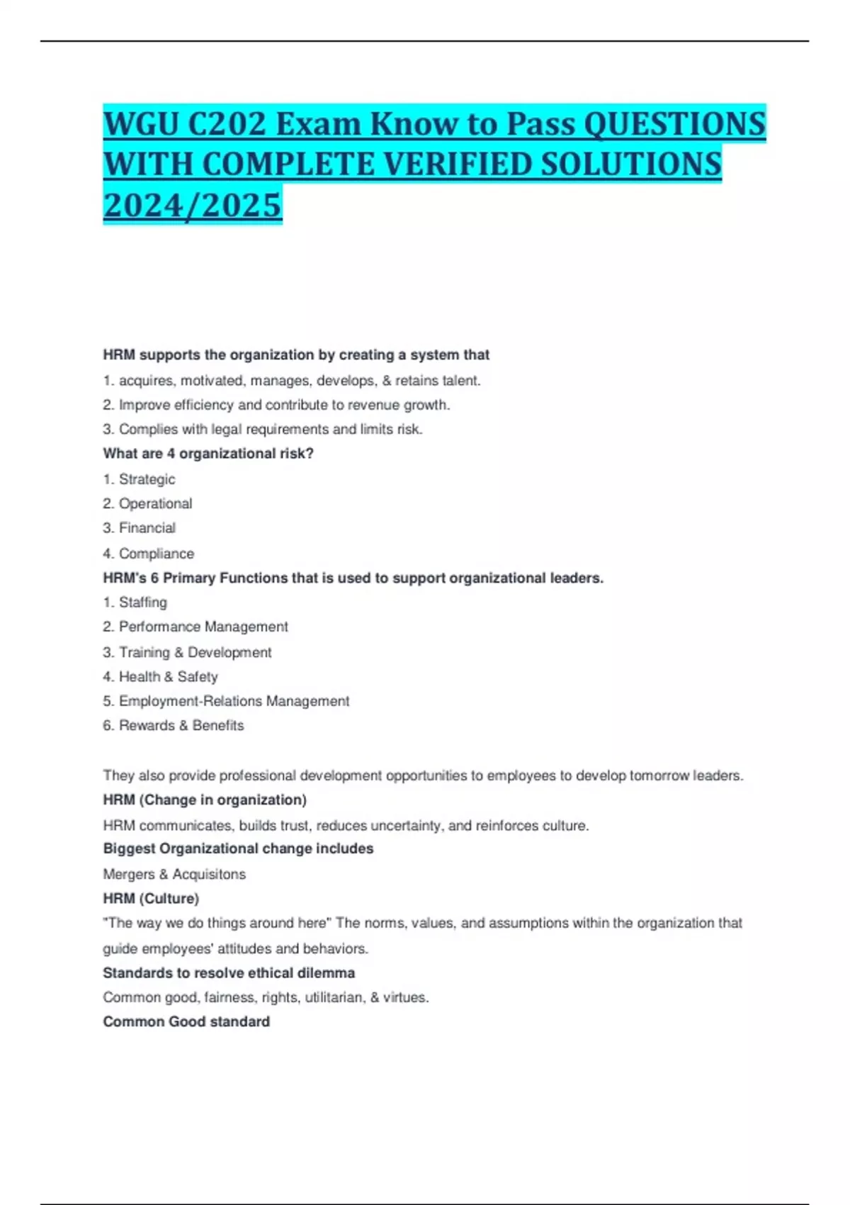 WGU C202 Exam Know to Pass QUESTIONS WITH COMPLETE VERIFIED SOLUTIONS 2024/2025