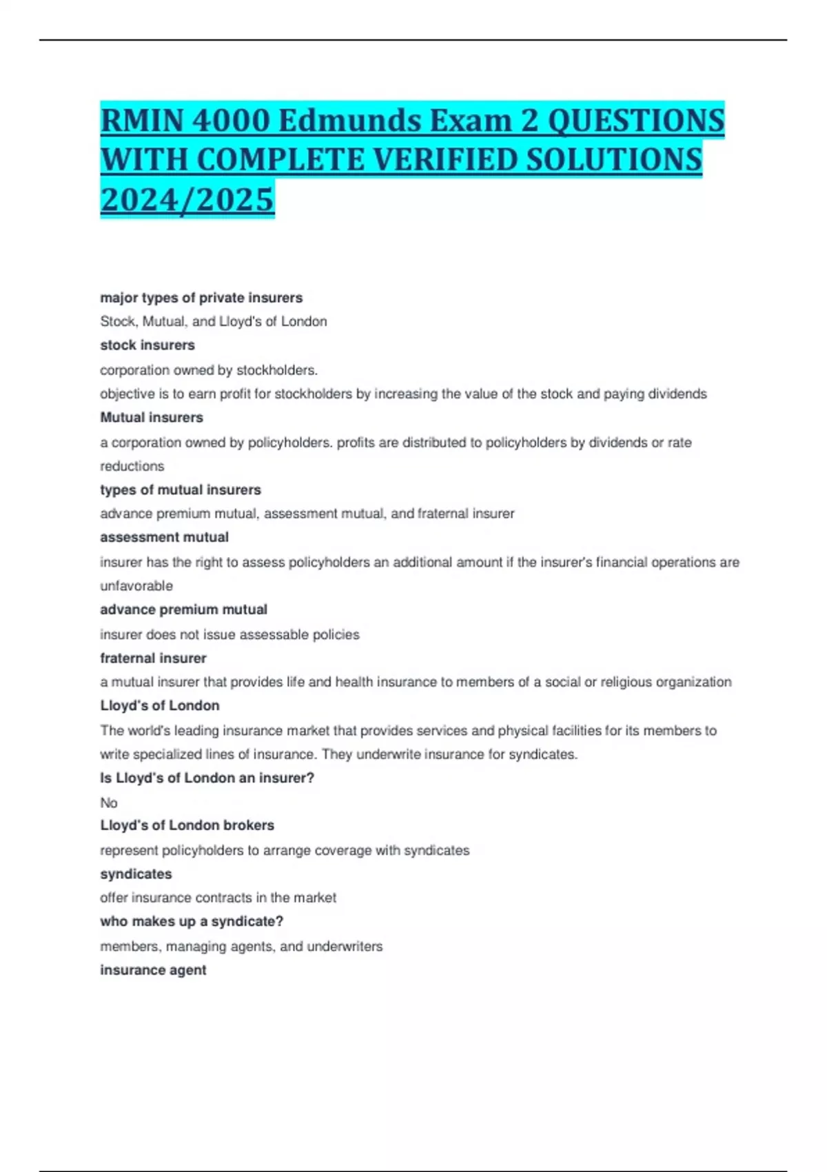 RMIN 4000 Edmunds Exam 2 QUESTIONS WITH COMPLETE VERIFIED SOLUTIONS 2024/2025