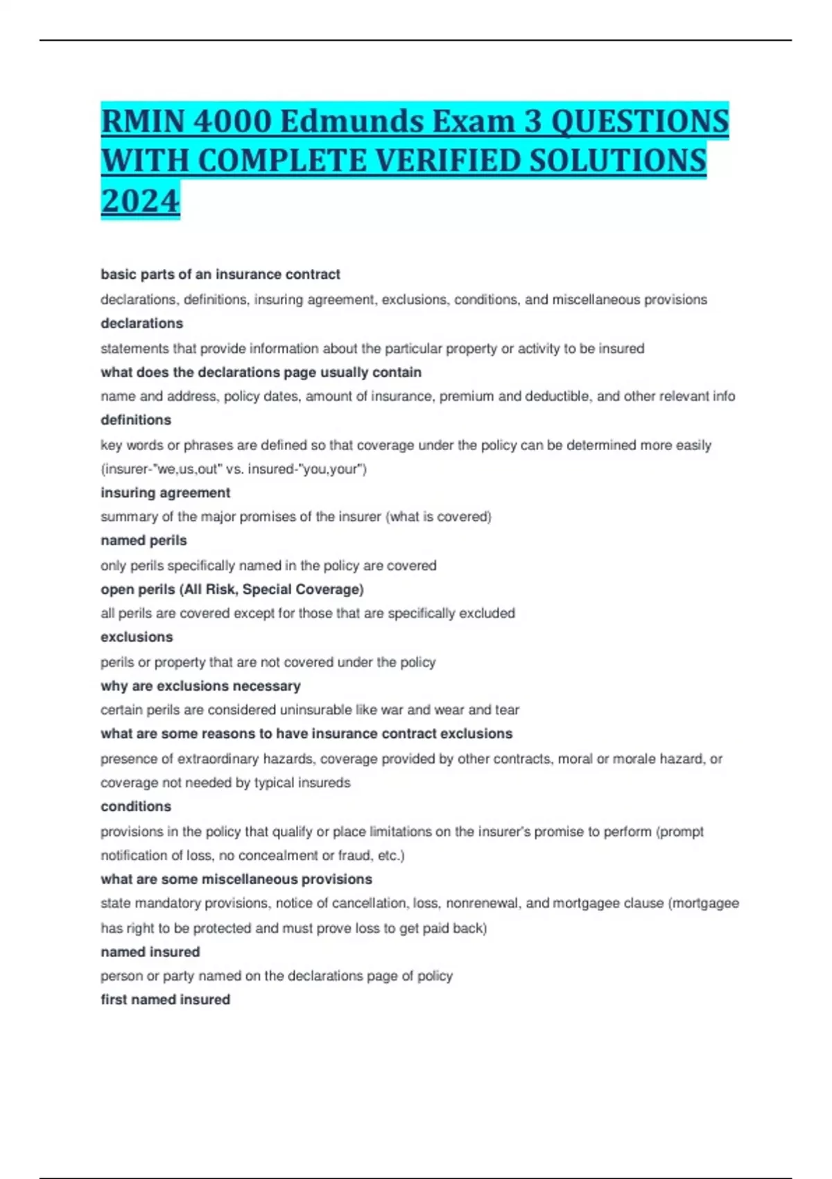 RMIN 4000 Edmunds Exam 3 QUESTIONS WITH COMPLETE VERIFIED SOLUTIONS 2024