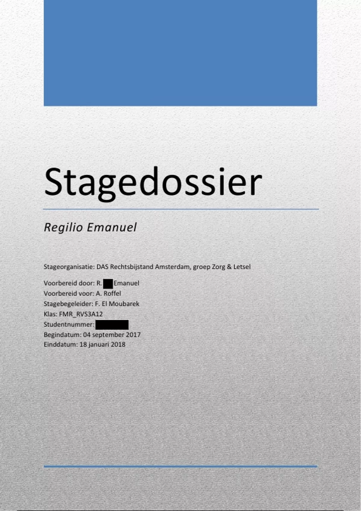 Stagedossier HBO-Rechten in het kader van stage bij DAS Rechtsbijstand Amsterdam, groep Zorg & Letsel in .