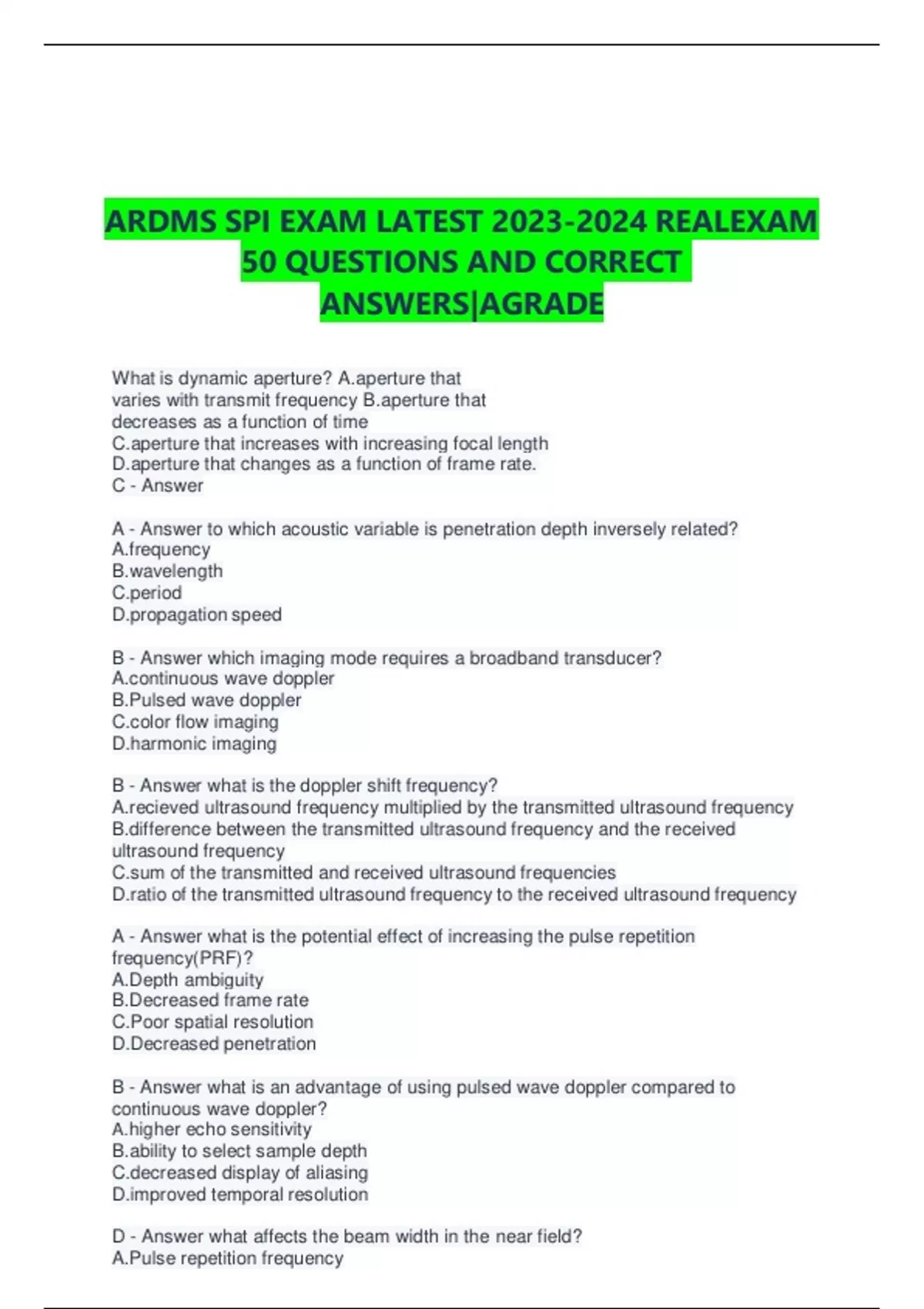 ARDMS SPI EXAM LATEST REAL EXAM 50 QUESTIONS AND CORRECT ANSWERS (A GRADE)ARDMS SPI EXAM LATEST REAL EXAM 50 QUESTIONS AND CORRECT ANSWERS (A GRADE)ARDMS SPI EXAM LATEST REAL EXAM 50 QUESTIONS AND CORRECT ANSWERS (A GRADE)ARDMS SPI EXAM LATEST REAL EXAM 50 QUESTIONS AND CORRECT ANSWERS (A GRADE)ARDMS SPI EXAM LATEST REAL EXAM 50 QUESTIONS AND CORRECT ANSWERS (A GRADE)ARDMS SPI EXAM LATEST REAL EXAM 50 QUESTIONS AND CORRECT ANSWERS (A GRADE)ARDMS SPI EXAM LATEST REAL EXAM 50 QUESTIONS AND CORRECT ANSWERS (A GRADE)ARDMS SPI EXAM LATEST REAL EXAM 50 QUESTIONS AND CORRECT ANSWERS (A GRADE)ARDMS SPI EXAM LATEST REAL EXAM 50 QUESTIONS AND CORRECT ANSWERS (A GRADE)