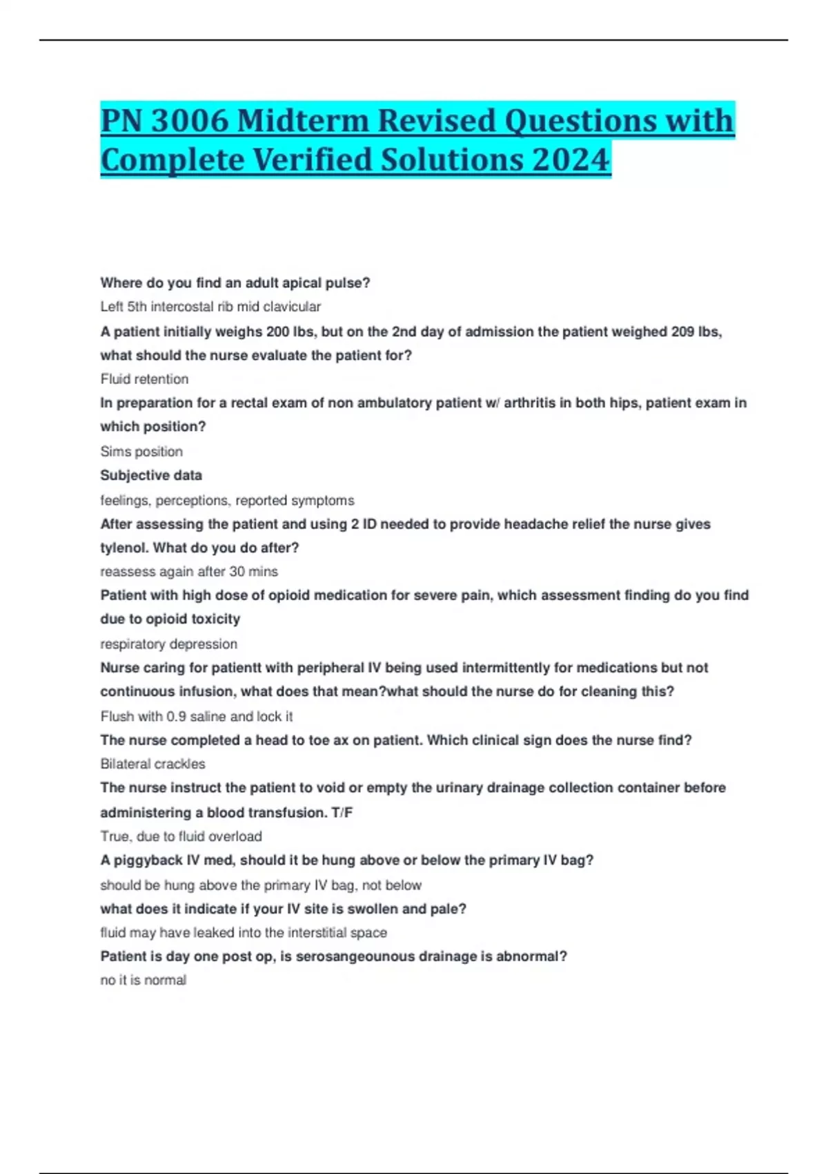 PN 3006 Midterm Revised Questions with Complete Verified Solutions 2024