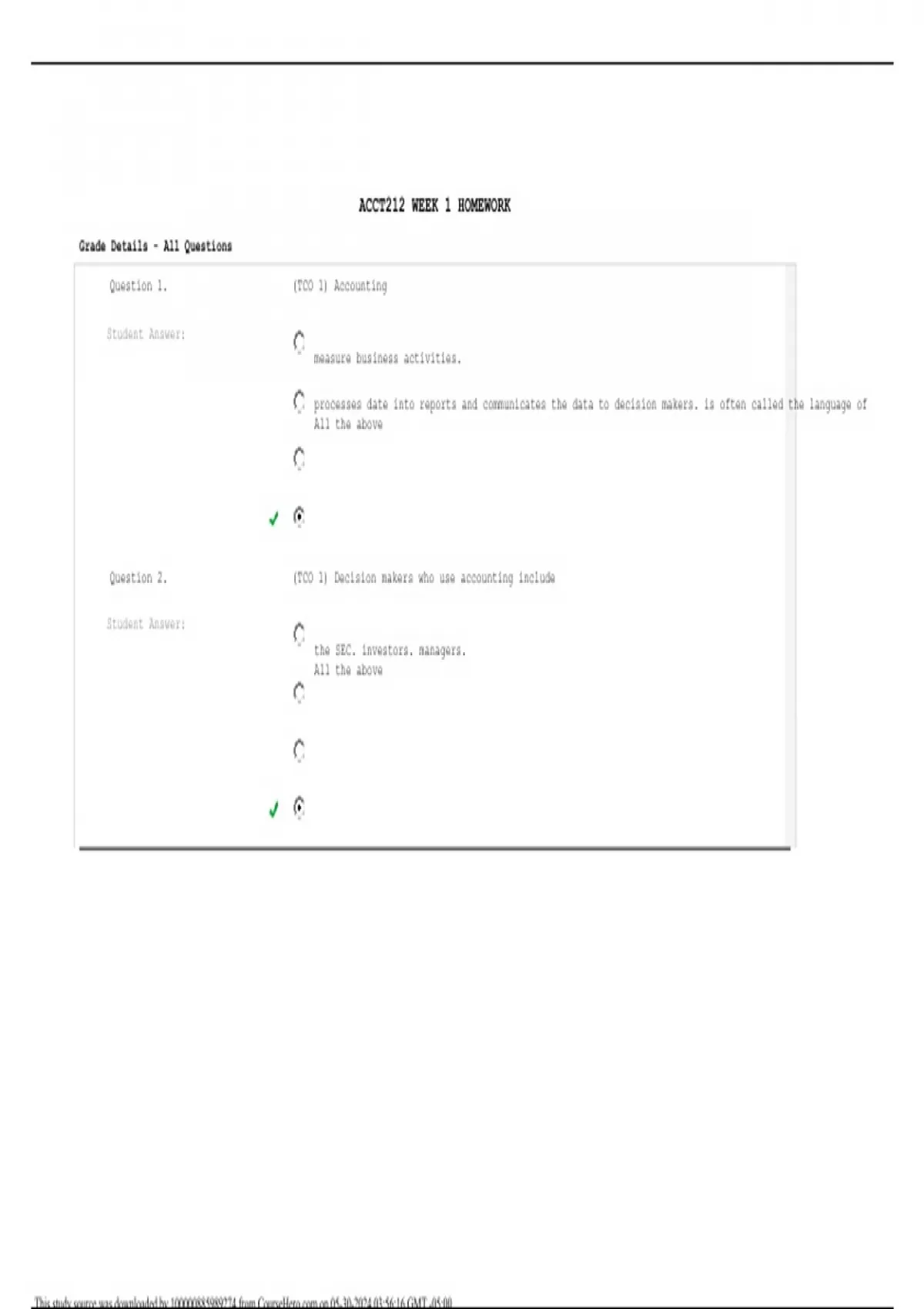 ACCT212 WEEK 1 HOMEWORK Assignment (100%correct answers)