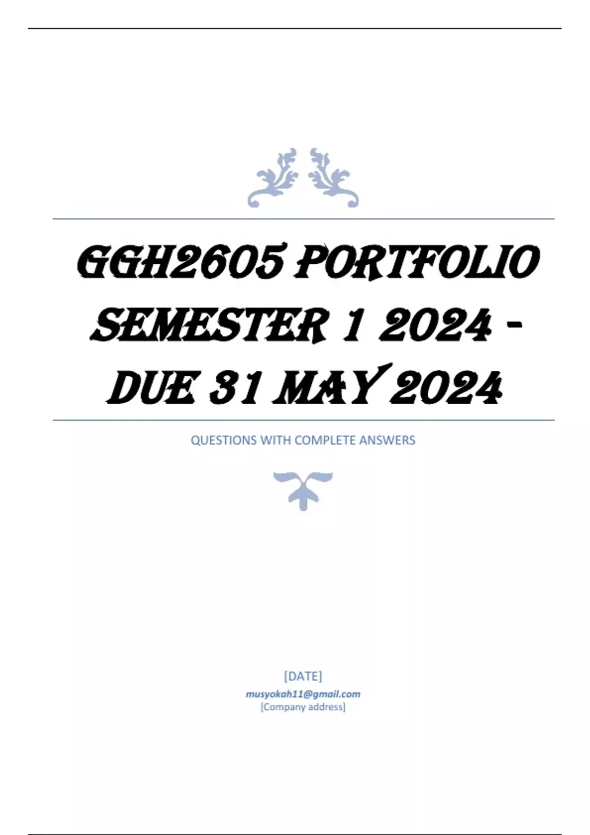 ,GGH2605 PORTFOLIO Semester 1 2024 - DUE 31 May 2024