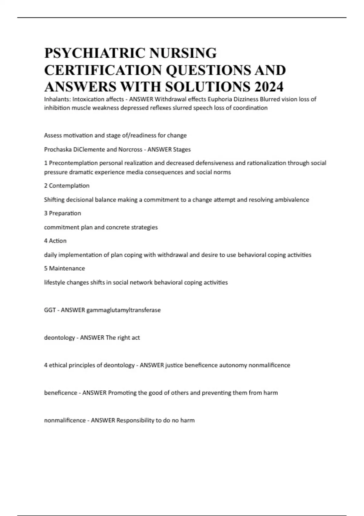 PSYCHIATRIC NURSING CERTIFICATION QUESTIONS AND ANSWERS WITH SOLUTIONS 2024