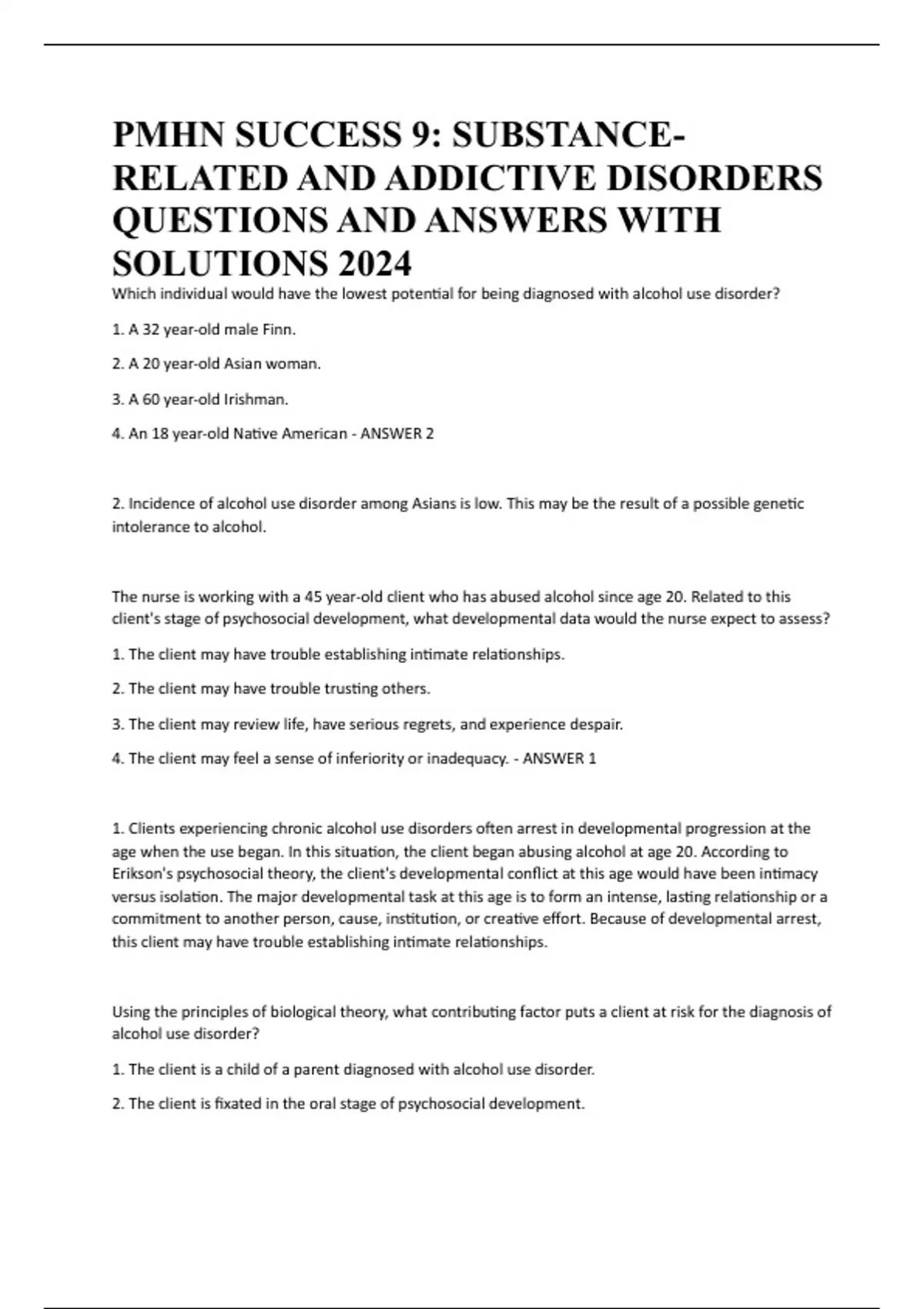 PMHN SUCCESS 9: SUBSTANCE-RELATED AND ADDICTIVE DISORDERS QUESTIONS AND ANSWERS WITH SOLUTIONS 2024