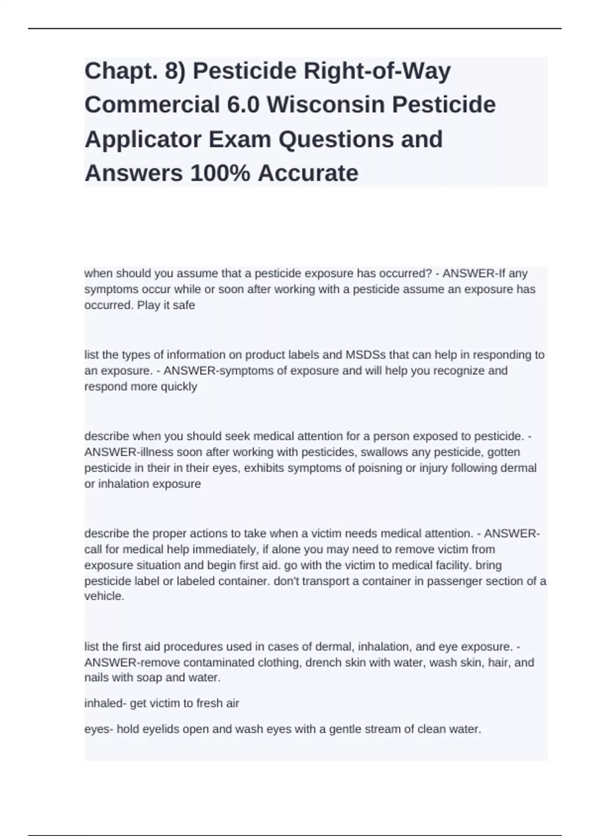 Chapt. 8) Pesticide Right-of-Way Commercial 6.0 Wisconsin Pesticide Applicator Exam Questions and Answers 100% Accurate