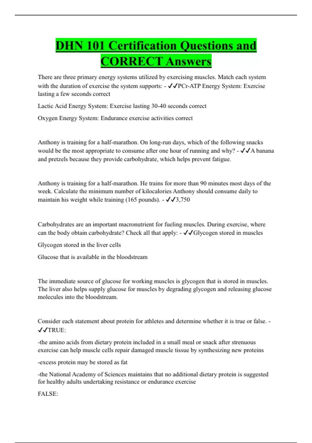 DHN 101 Certification Questions and CORRECT Answers