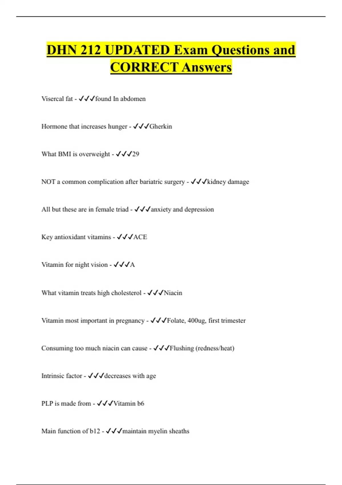 DHN 212 UPDATED Exam Questions and CORRECT Answers