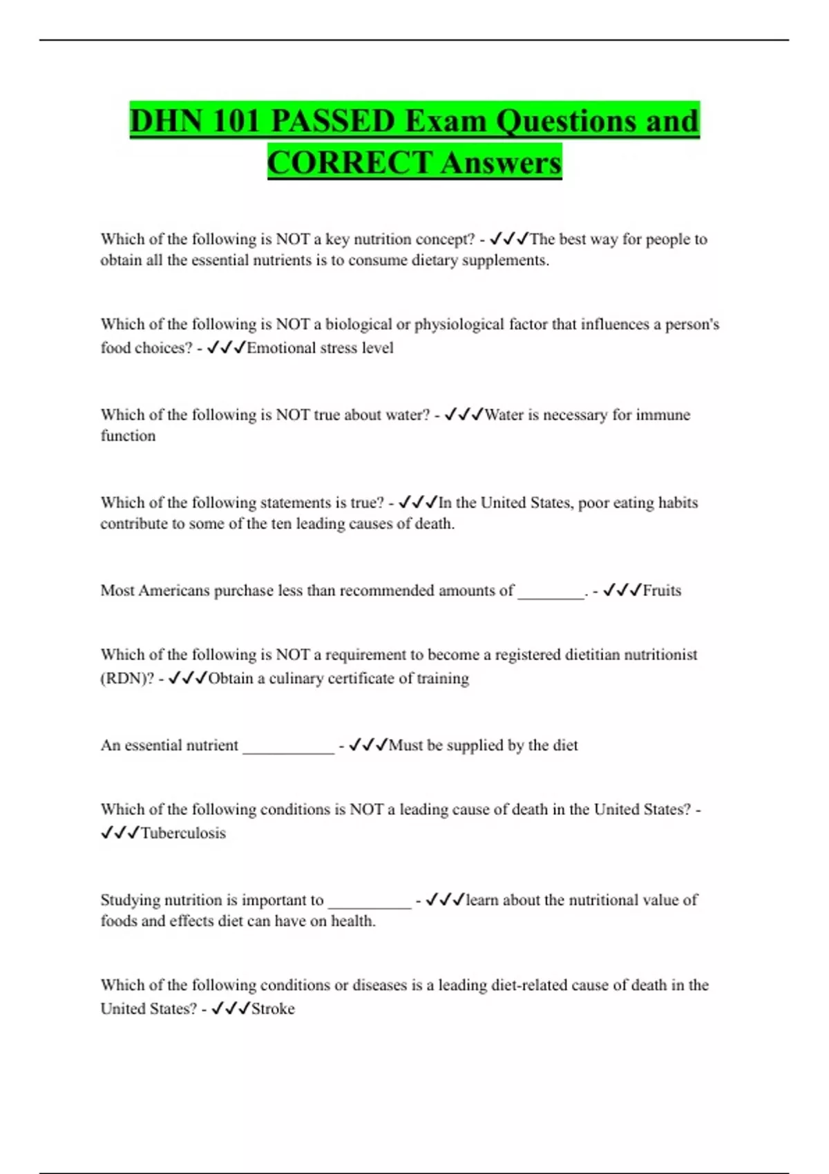 DHN 101 PASSED Exam Questions and CORRECT Answers