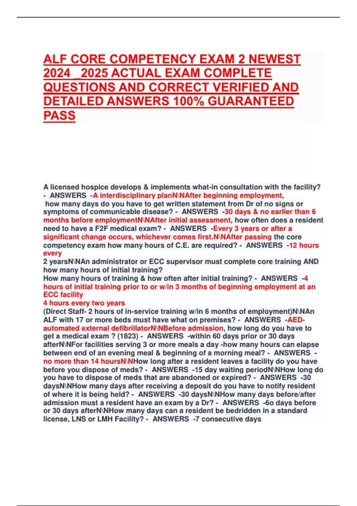 ALF CORE COMPETENCY EXAM 2 NEWEST 2024 _2025 ACTUAL EXAM COMPLETE QUESTIONS AND CORRECT VERIFIED AND DETAILED ANSWERS 100% GUARANTEED PASS A+ GRADED