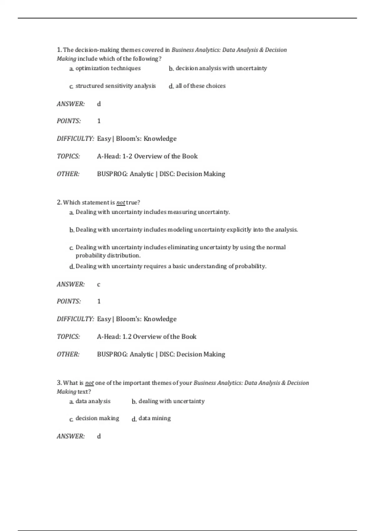 a. Three important themes run through the book: data analysis, decision making, and