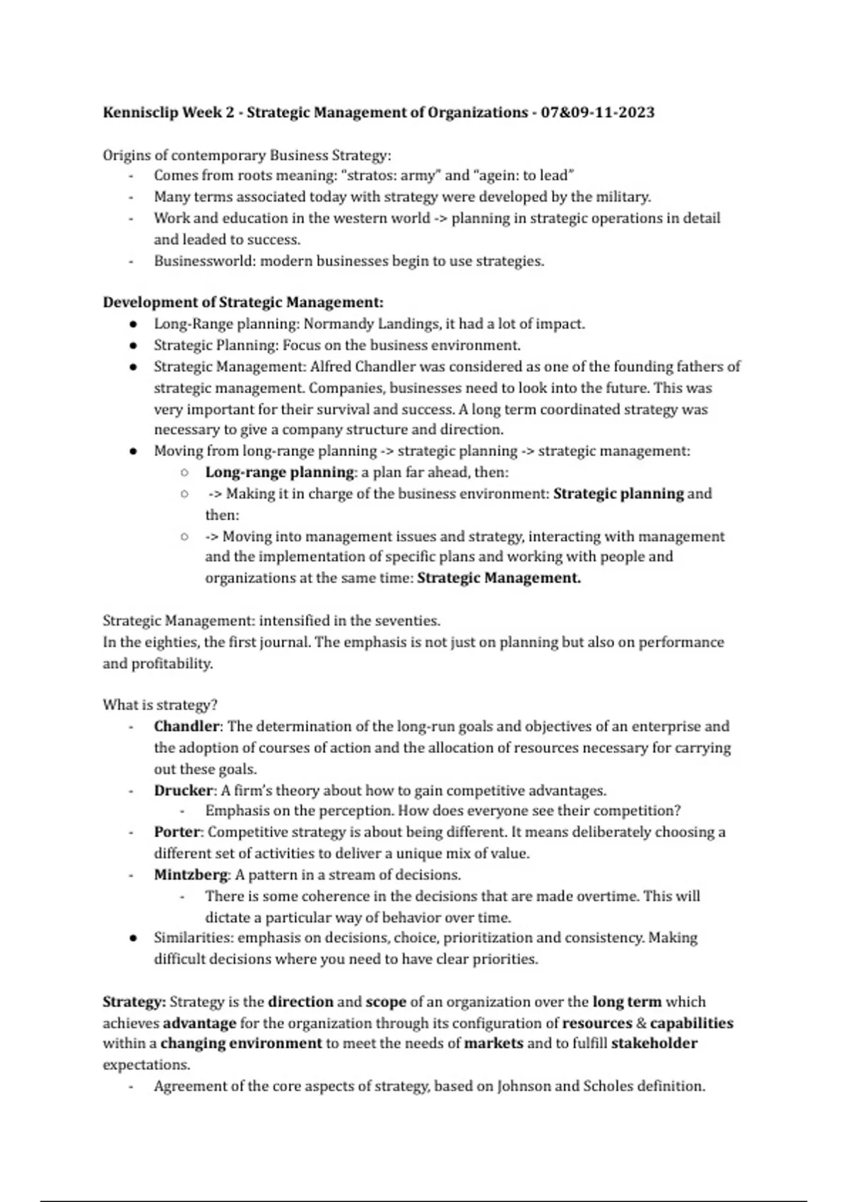 Kennisclip Week 2 - Strategic Management of Organizations - 07&09-11-2023