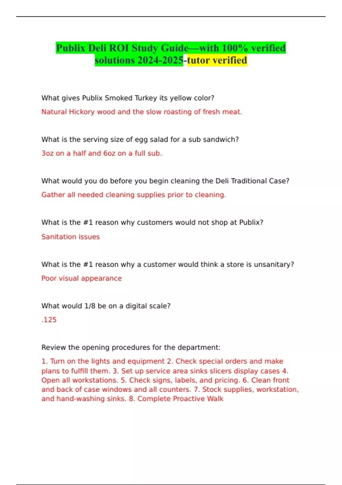 Publix Deli ROI Study Guide—with 100% verified solutions -tutor verified