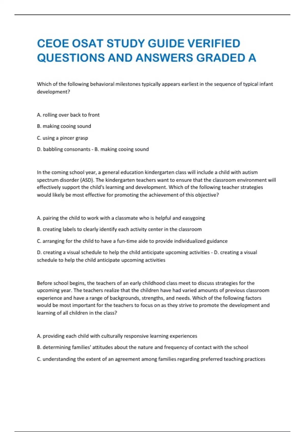 CEOE OSAT STUDY GUIDE VERIFIED QUESTIONS AND ANSWERS GRADED A