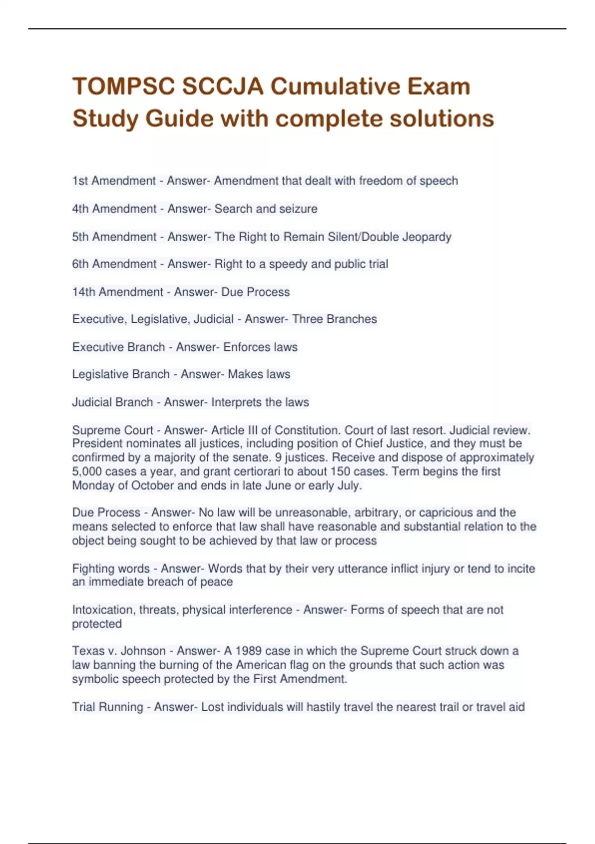 TOMPSC SCCJA Cumulative Exam Study Guide with complete solutions