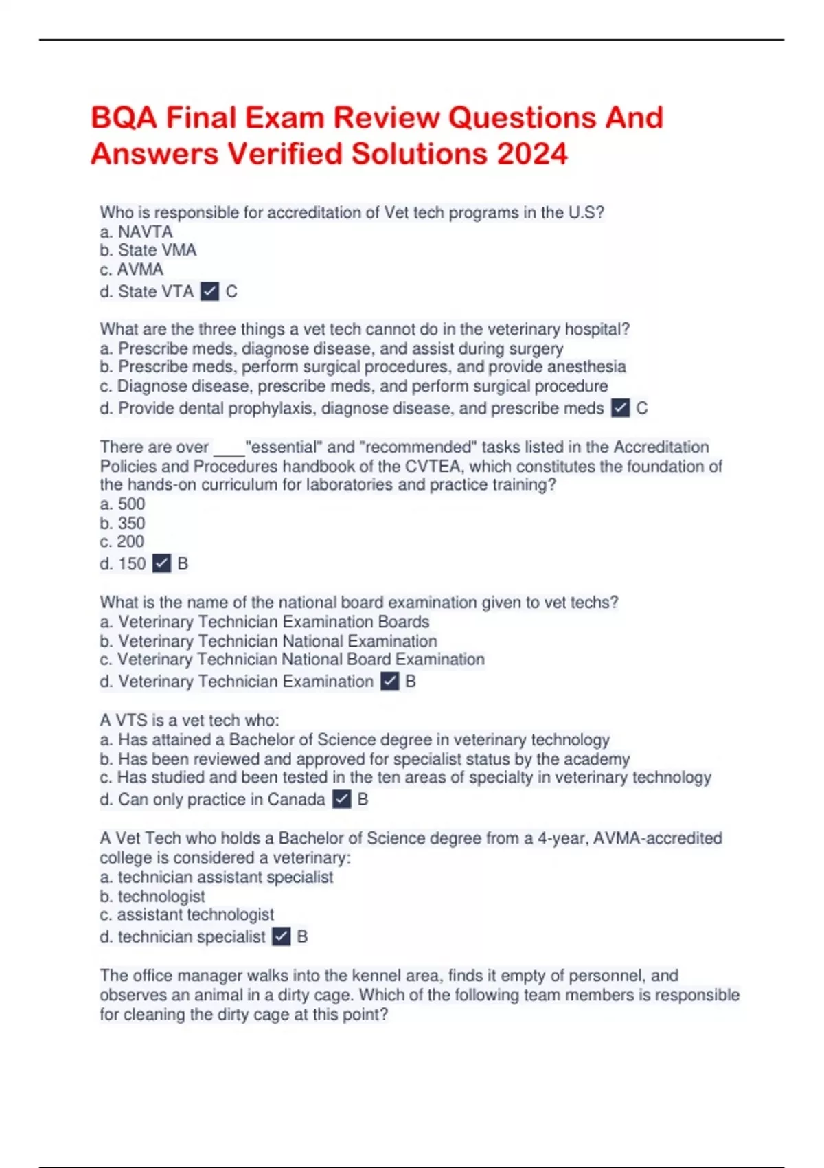 BQA Final Exam Review Questions And Answers Verified Solutions 2024