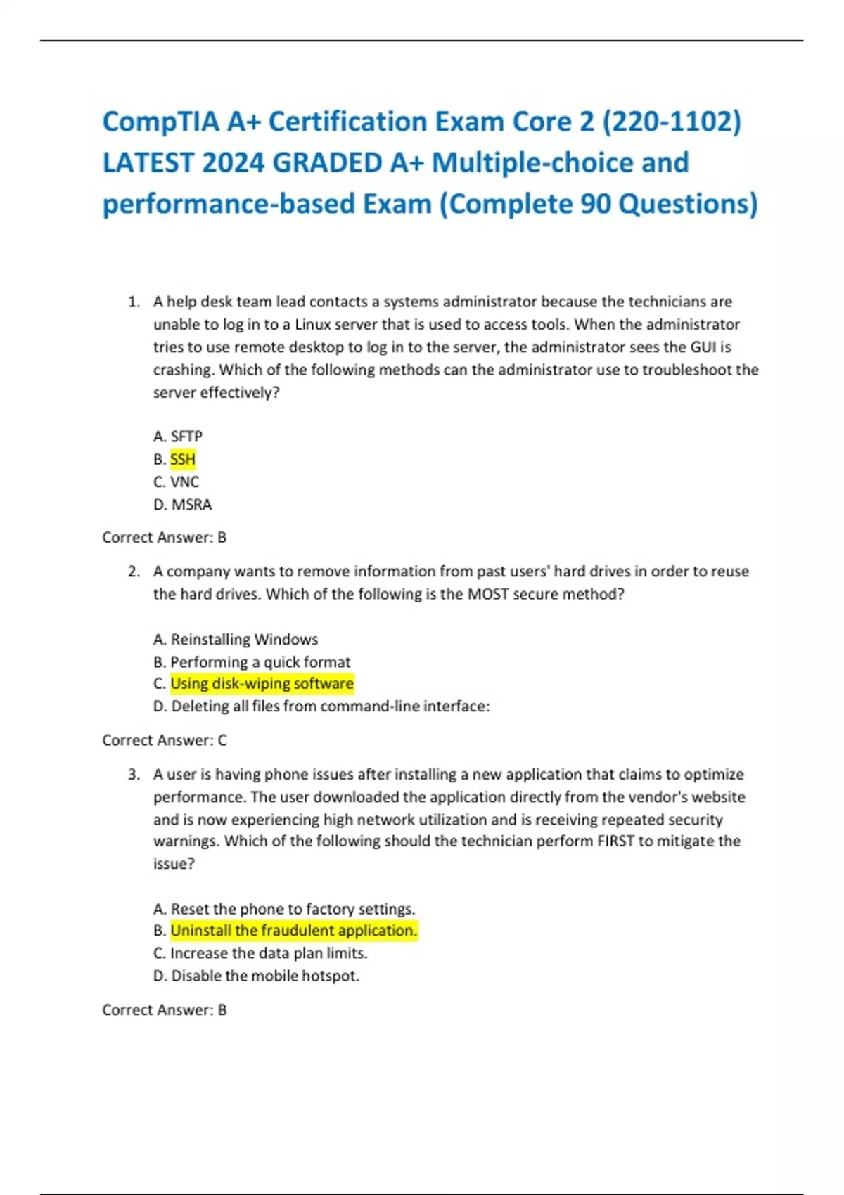 CompTIA A+ Certification Exam Core 2 (220-1102) LATEST 2024 GRADED A+ Multiple-choice and performance-based Exam (Complete 90 Question