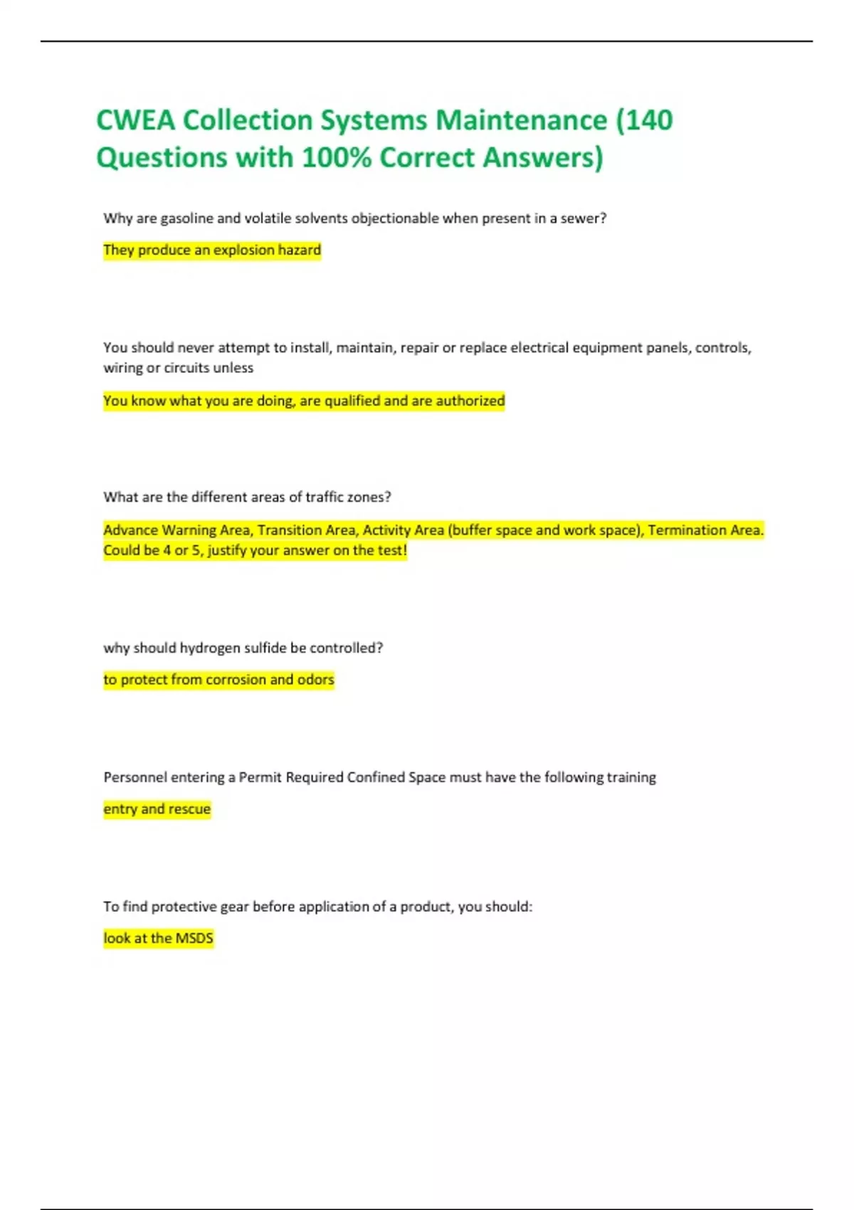 - CWEA Collection Systems Maintenance (140 Quetion