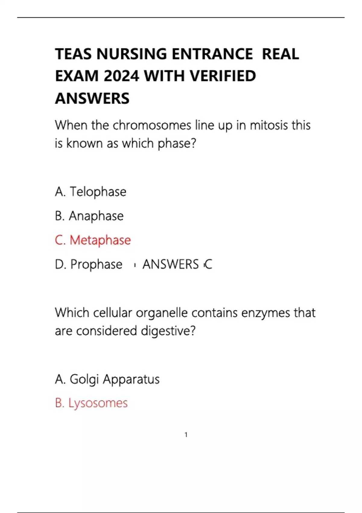 TEAS NURSING ENTRANCE REAL EXAM 2024 WITH VERIFIED ANSWERSTEAS NURSING ENTRANCE REAL EXAM 2024 WITH VERIFIED ANSWERSTEAS NURSING ENTRANCE REAL EXAM 2024 WITH VERIFIED ANSWERS