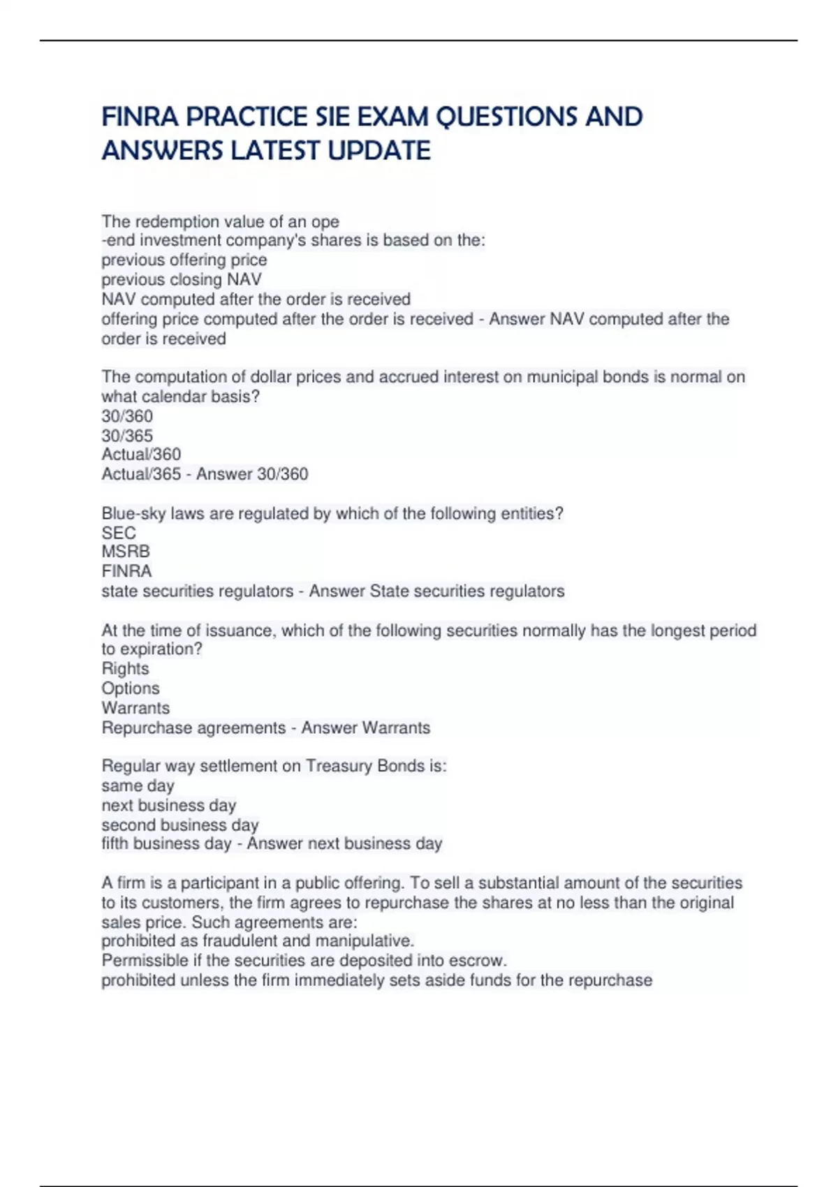 FINRA PRACTICE SIE EAM QUESIONS AND ASWERS LAT