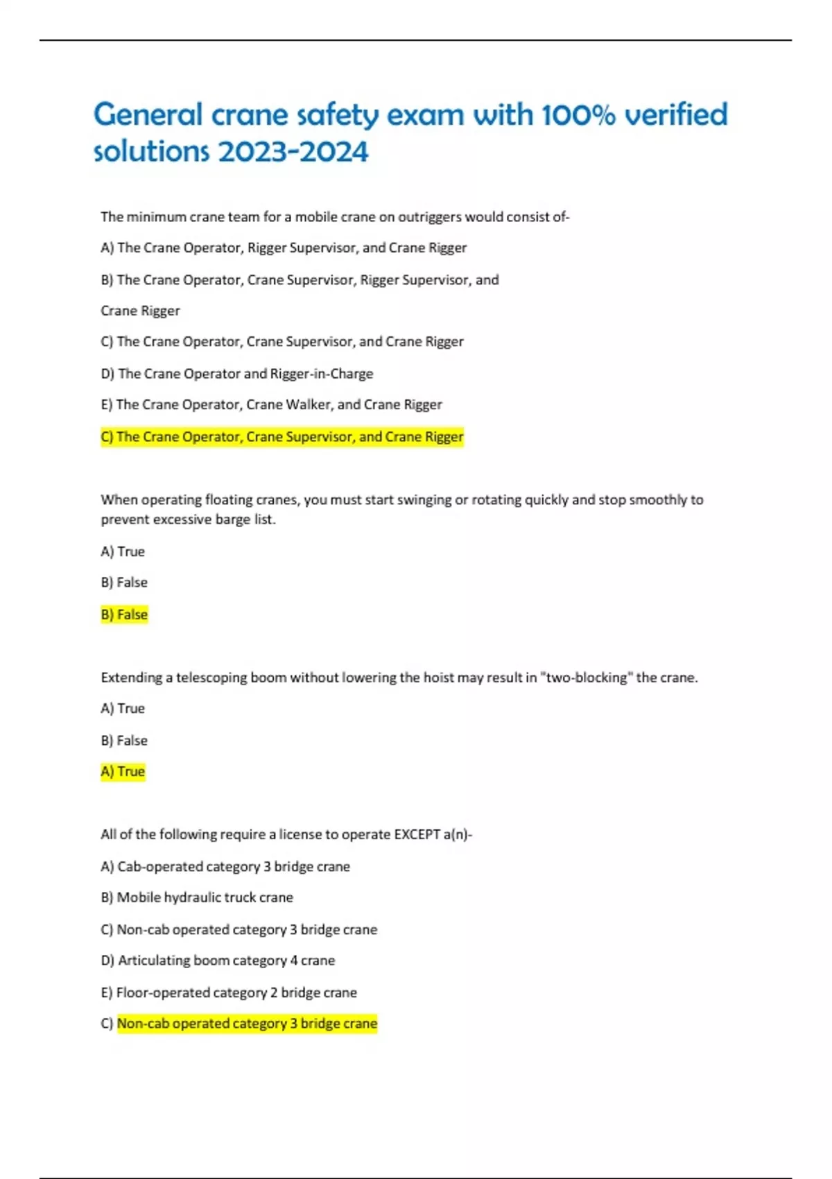 General crane safety exam with 100% verified solutions