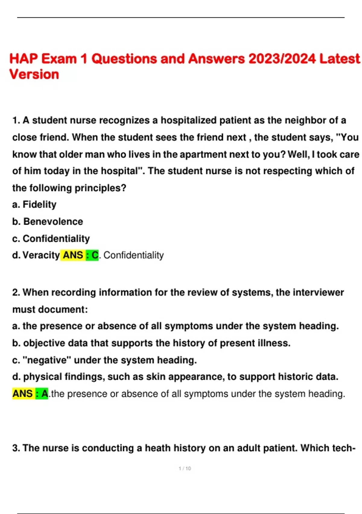 - HAP Exa 1 Quesions and Aswers 2023/2024 Latst