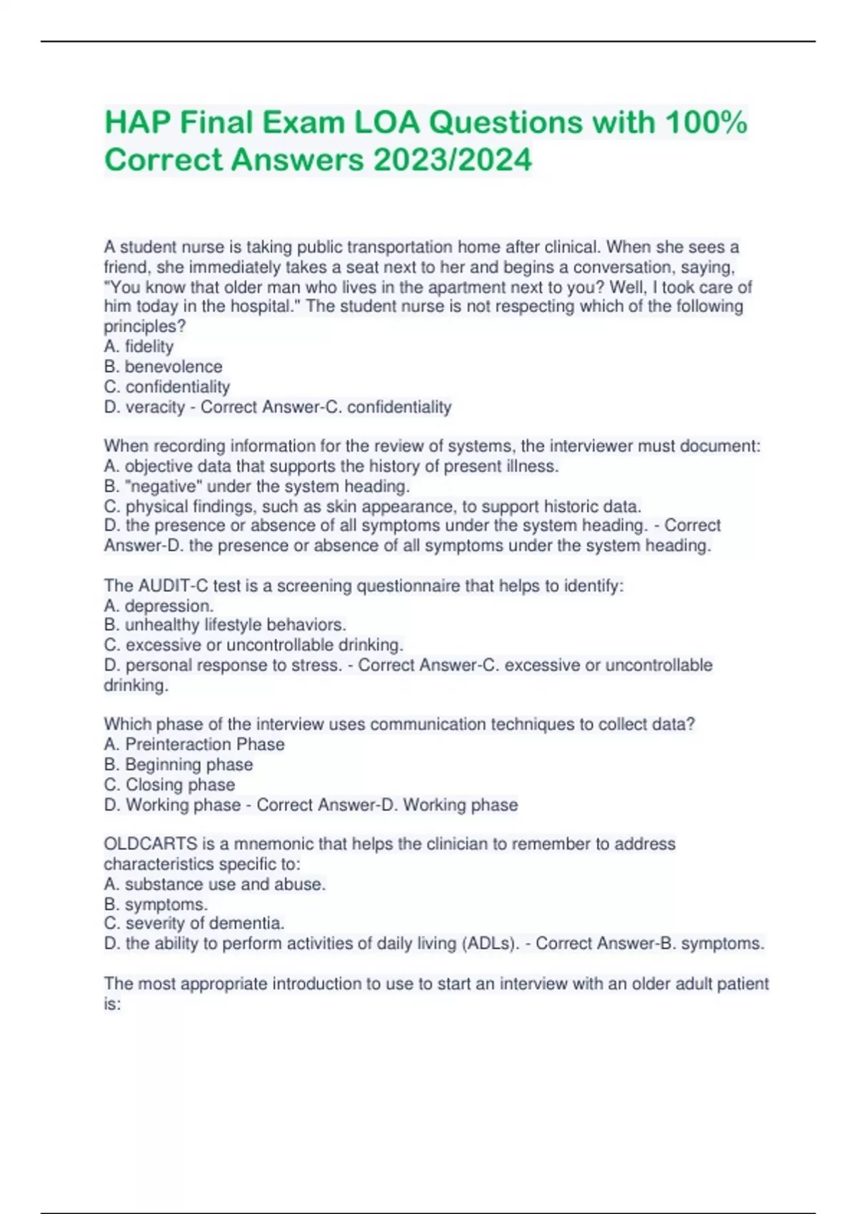 HAP Final Exam LOA Questions with 100% Correct Answers 2023/202