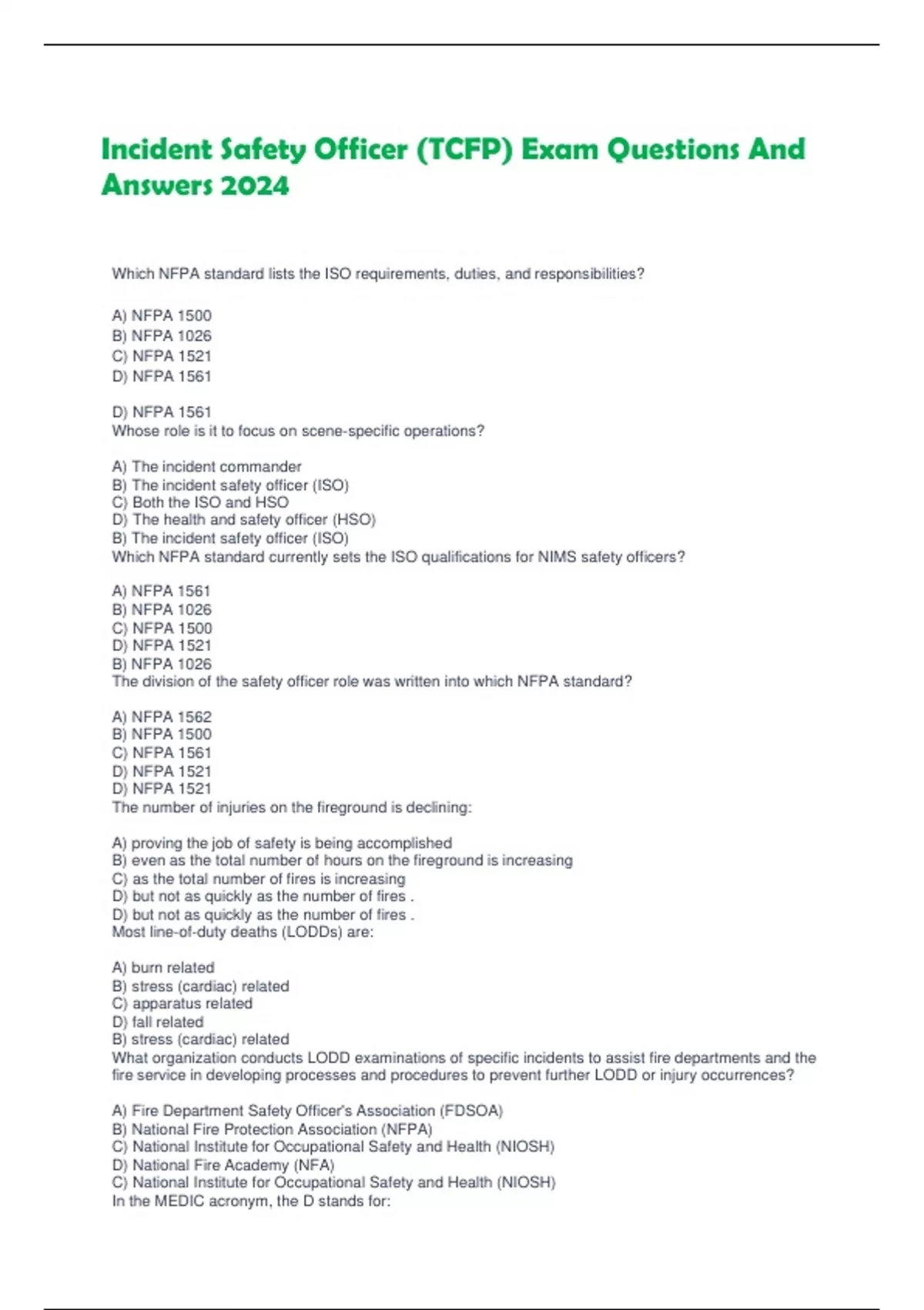 Incident Safety Officer (TCFP) Exam Questions And Answers 2024