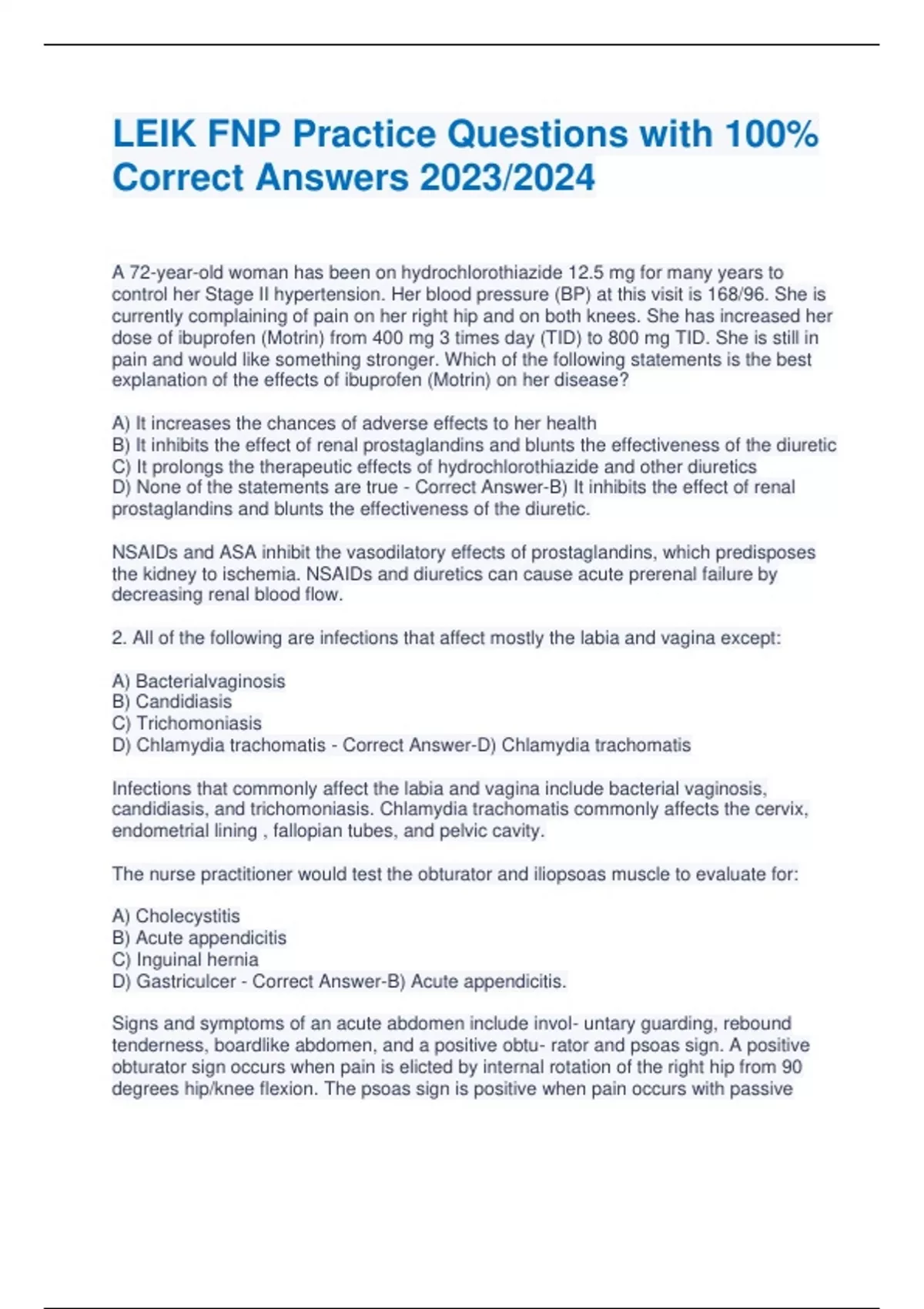 - EIK FNP Practice Qustions with 100% Corect Answ